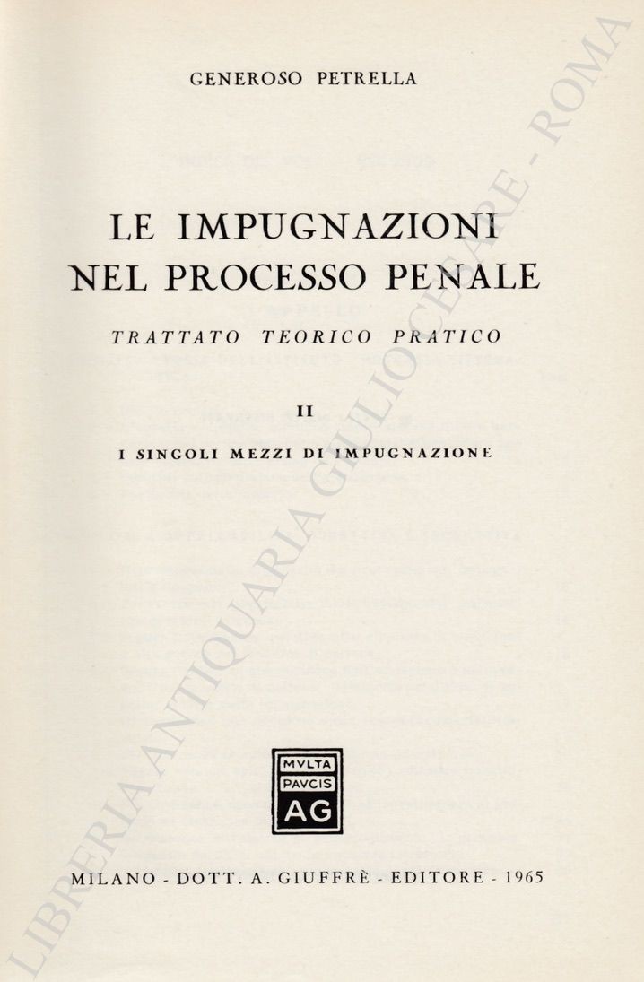 Le impugnazioni nel processo penale. Trattato teorico pratico. Vol. I - Le discipline generali; Vol. II - I singoli mezzi di impugnazione