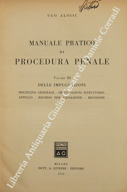 Manuale pratico di procedura penale. Vol. I. Vol. III - Delle impugnazioni; Disciplina generale; Impugnazioni istruttorie; Appello; Ricorso per Cassazione; Revisione. Vol. IV - Dell'esecuzione e dei rapporti giurisdizionali con autorità straniere