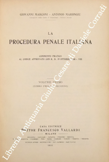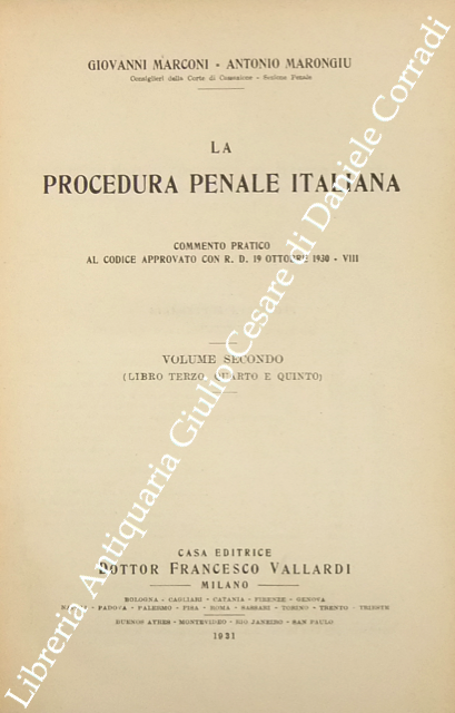 La procedura penale italiana commento pratico al codice approvato con R. D. 19 ottobre 1930. Vol. I - Libro primo e secondo; Vol. II - Libro terzo, quarto, quinto