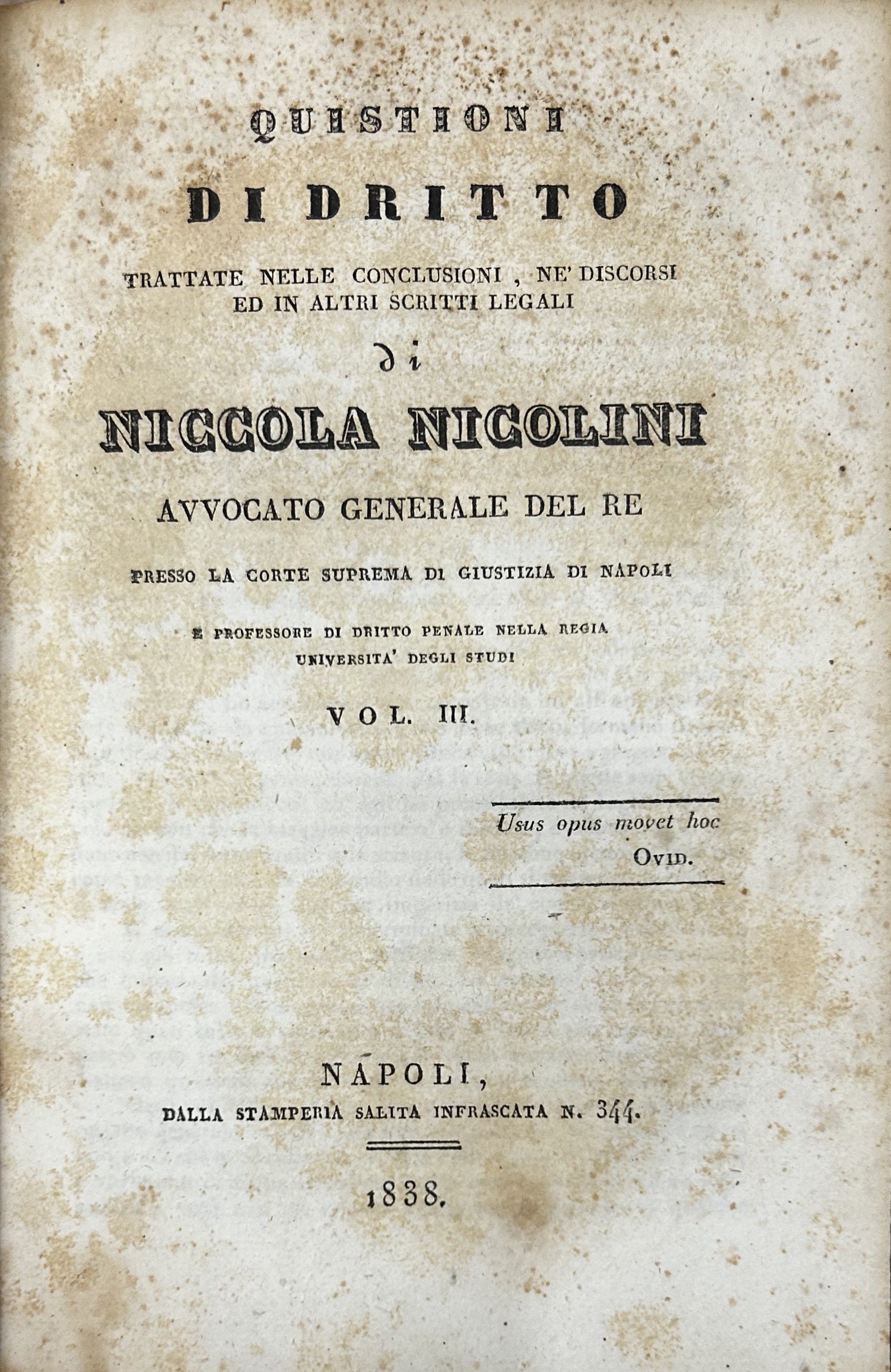 Quistioni di dritto trattate nelle conclusioni, ne' discorsi ed in altri scritti legali