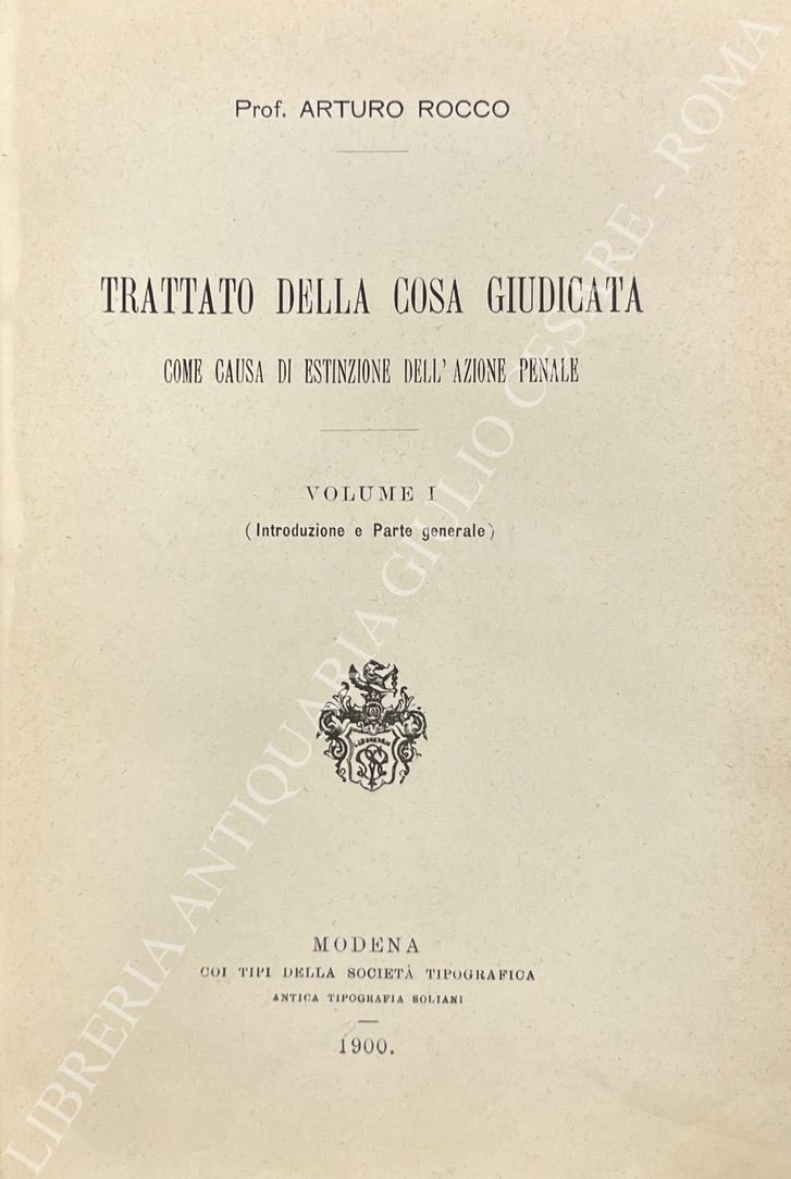 Trattato della cosa giudicata come causa di estinzione dell'azione penale. Vol. I - (Introduzione e Parte generale)