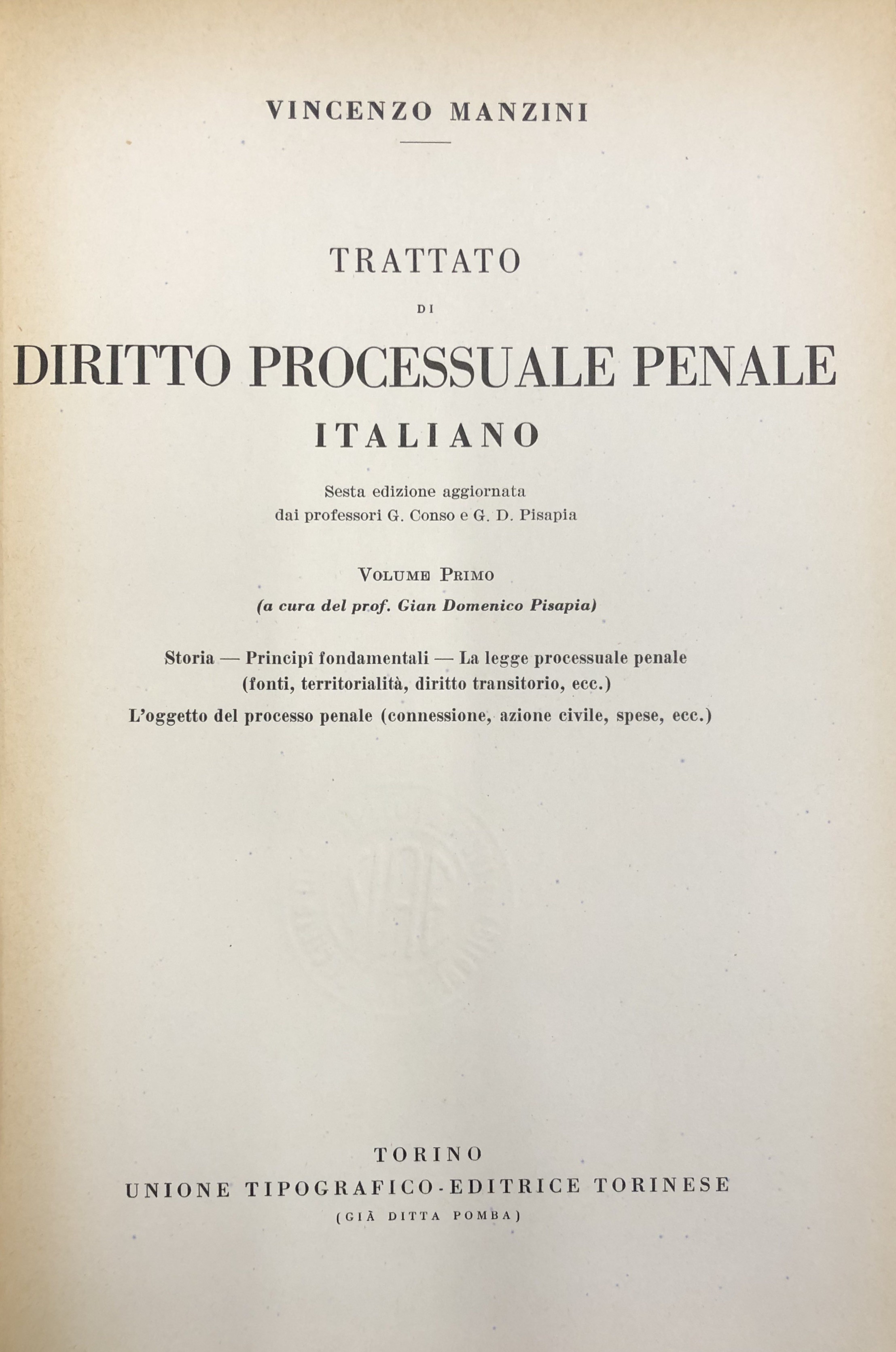 Sesta edizione aggiornata dai professori G. Conso e G.D. PisapiaLuogo: Torino