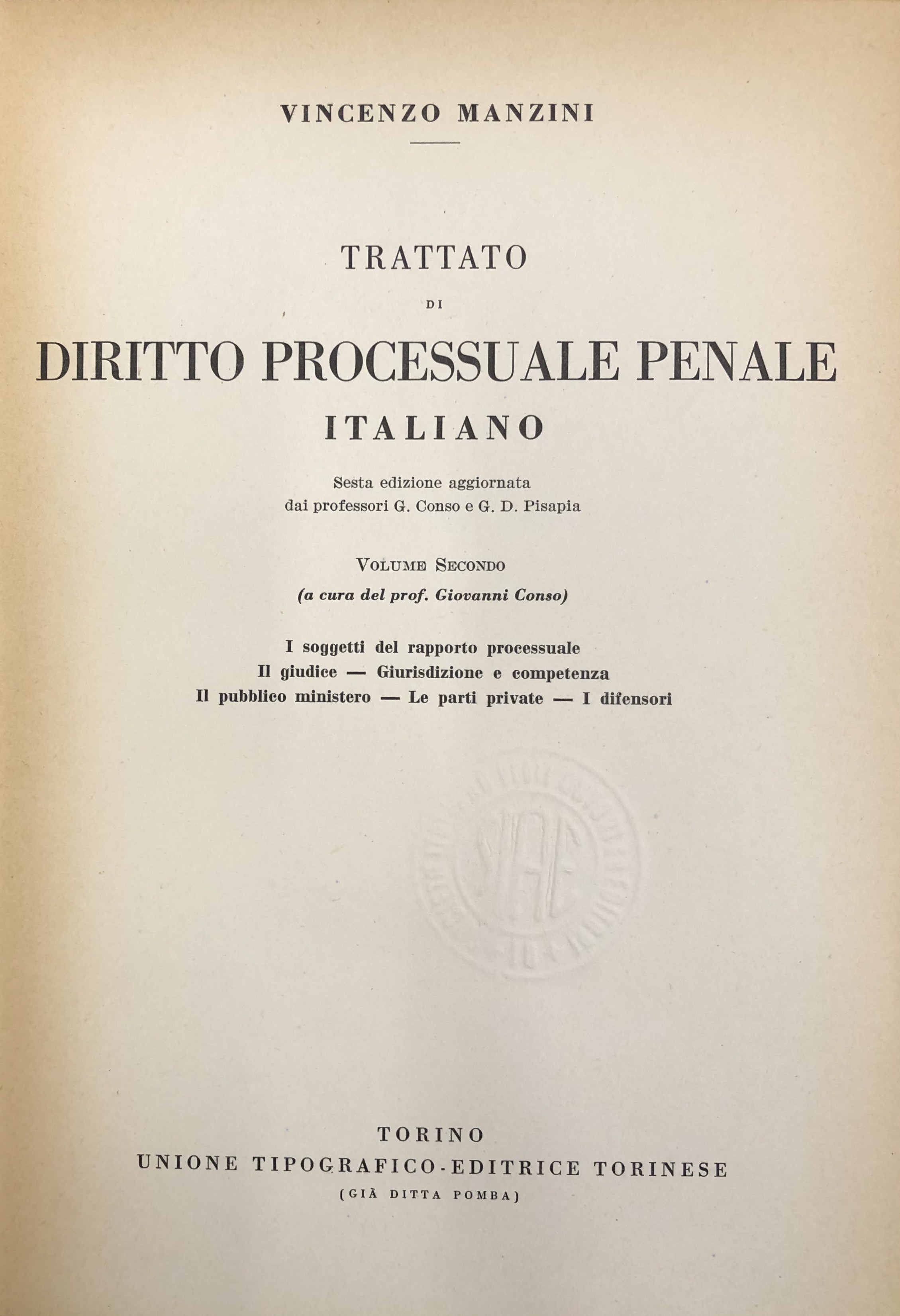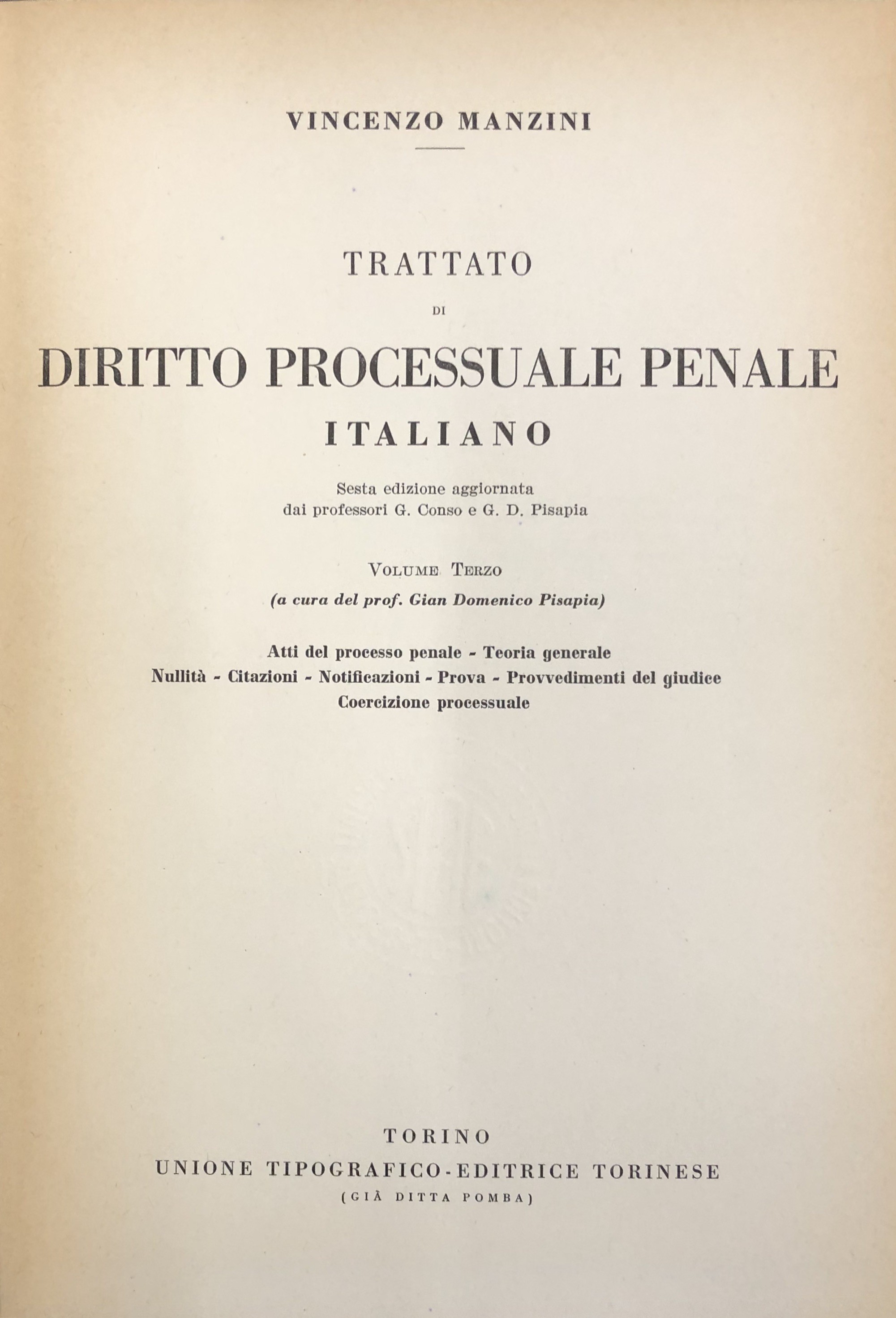 Manzini Vincenzo (1872-1957) - Conso Giovanni - Pisapia Gian Domenico (1915-1995)