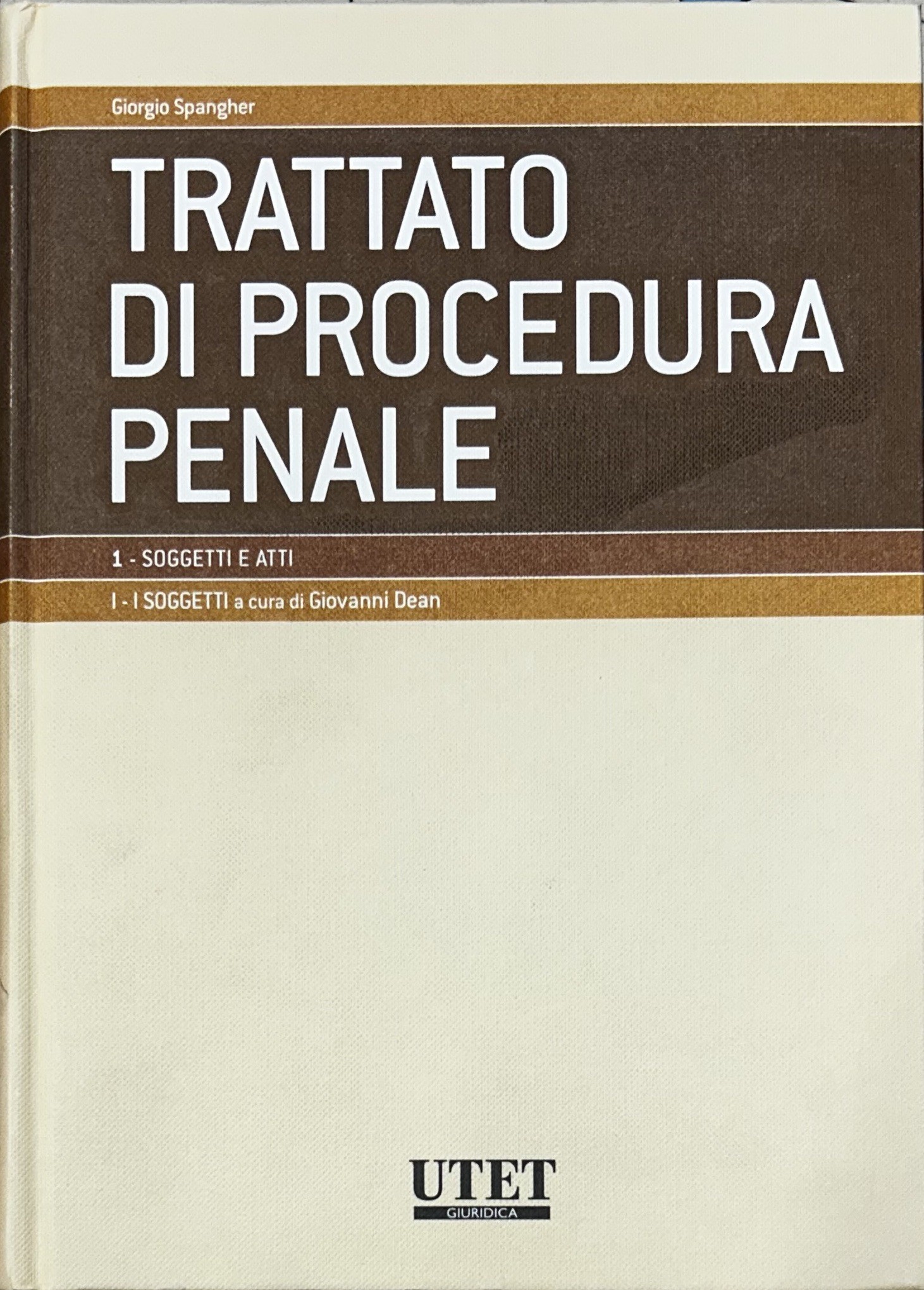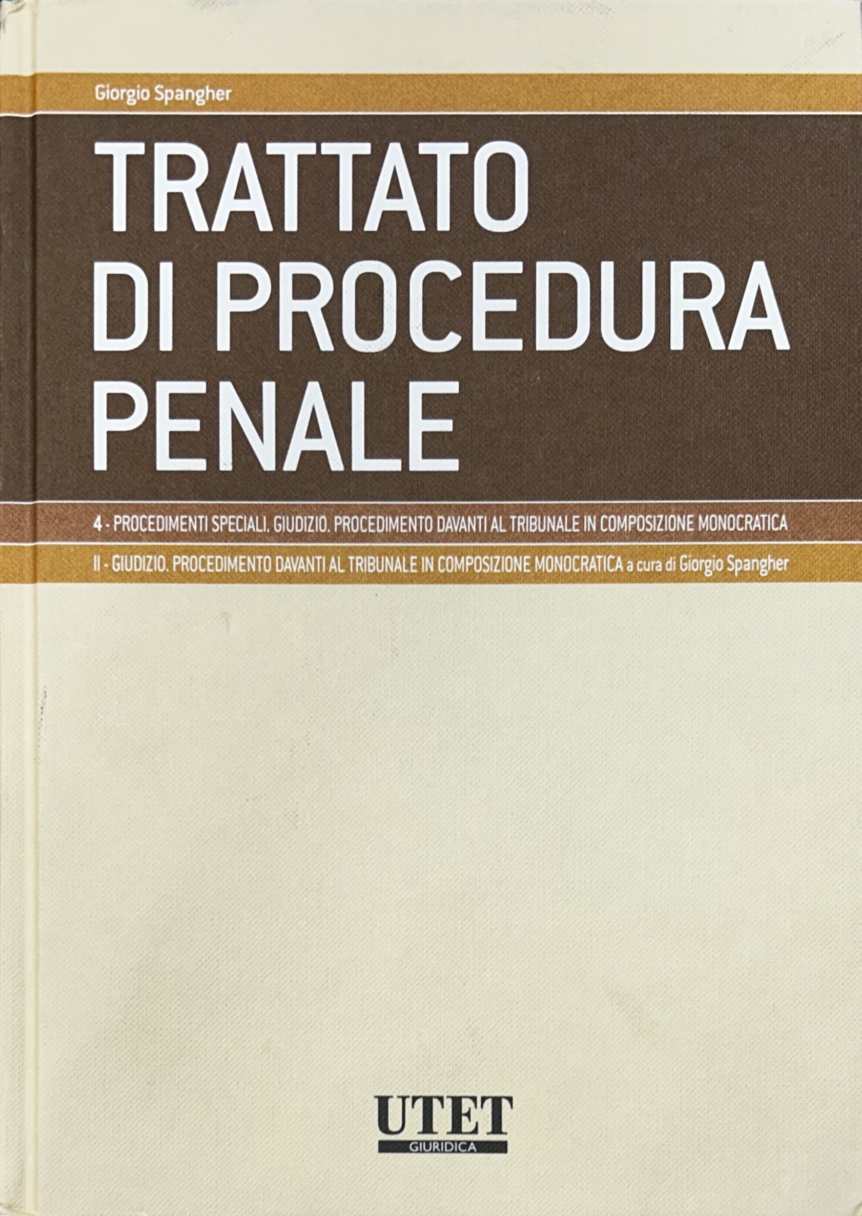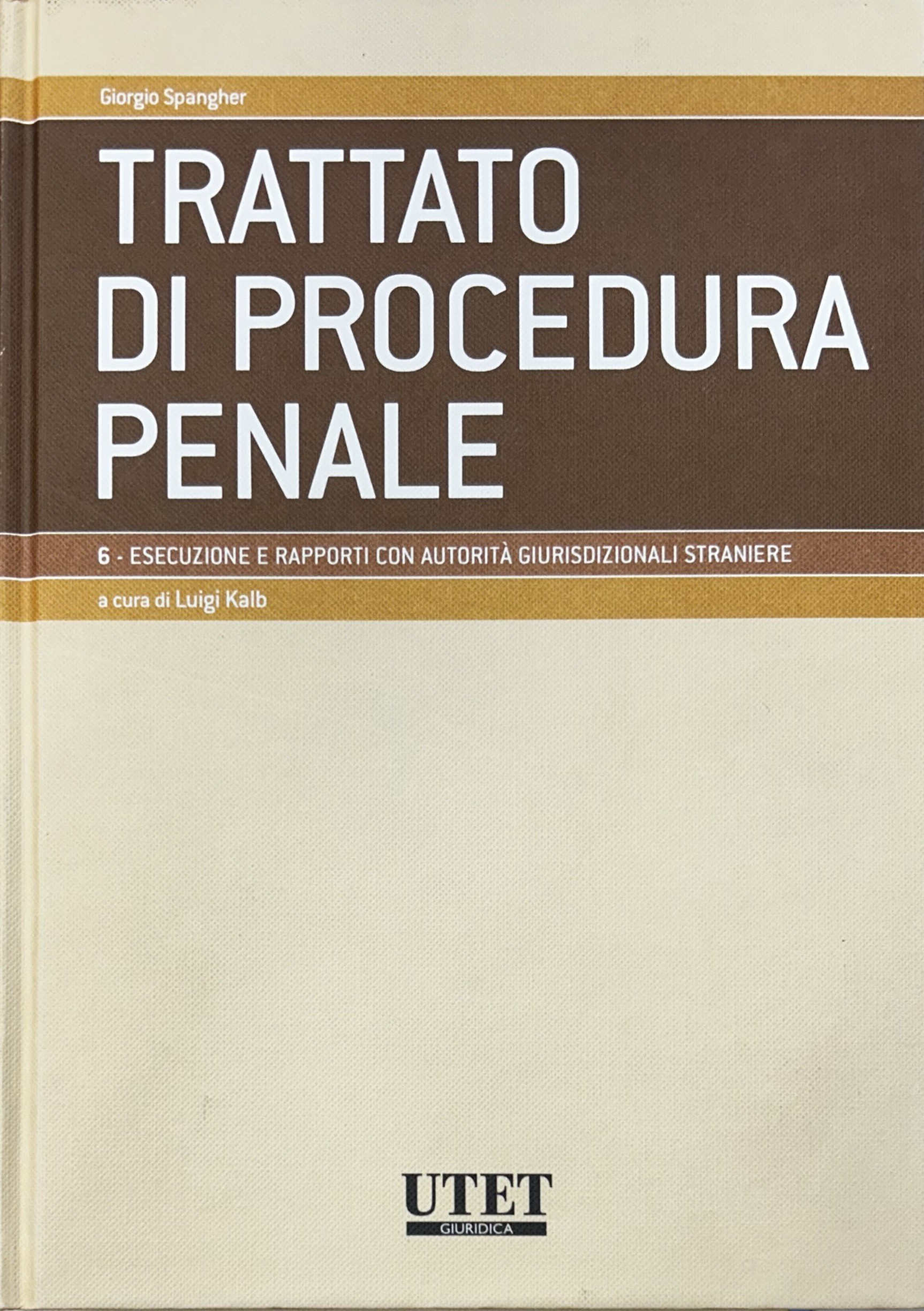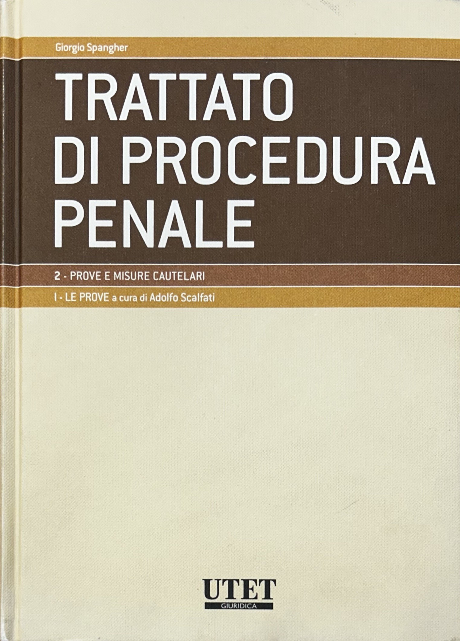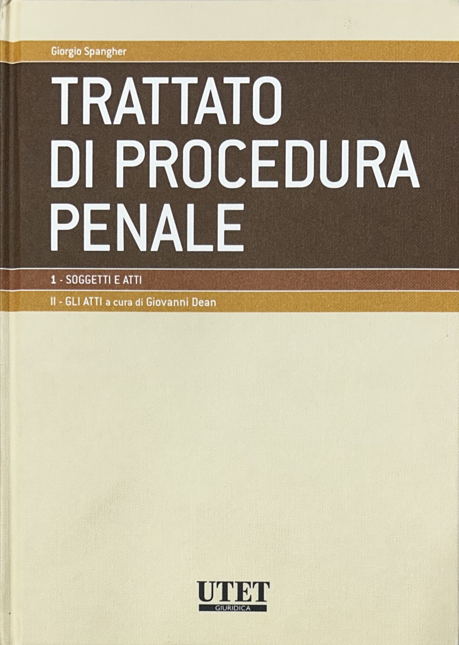 Trattato di procedura penale. Vol. I - Soggetti e atti. Tomo I: I soggetti a cura di Giovanni Dean; Tomo II: Gli atti a cura di Giovanni Dean; Vol. II - Prove e misure cautelari. Tomo I: Le prove a cura di Adolfo Scalfati; Tomo II: Le misure cautelari a cura di Adolfo Scalfati; Vol. III - Indagini preliminari e udienza prliminare a cura di Giulio Garuti; Vol. IV,1 - Procedimenti speciali. Giudizio. Procedimento davanti al tribunale in composizione monocratica. Tomo I: Procedimenti speciali a cura di Leonardo Filippi; Tomo II: Giudizio. Procedimento davanti al tribunale in composizione monocratica a cura di Giorgio Spangher; Vol. V - Impugnazioni a cura di Giorgio Spangher; Vol. VI - Esecuzione e rapporti con autorità giurisdizionali straniere a cura di Luigi Kalb; Vol. VII,1 e VII,2 - Modelli differenziati di accertamento a cura di Giulio Garuti