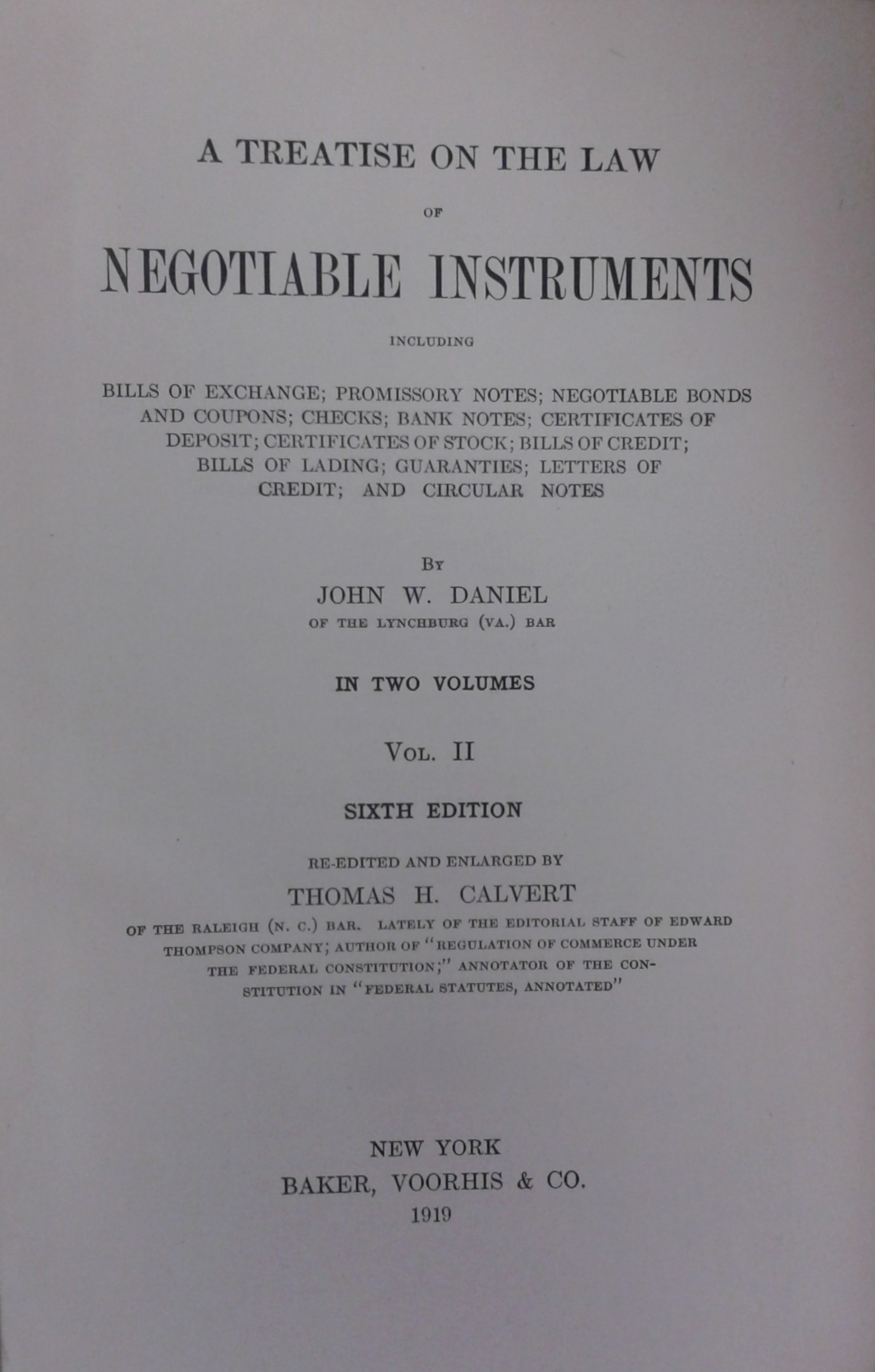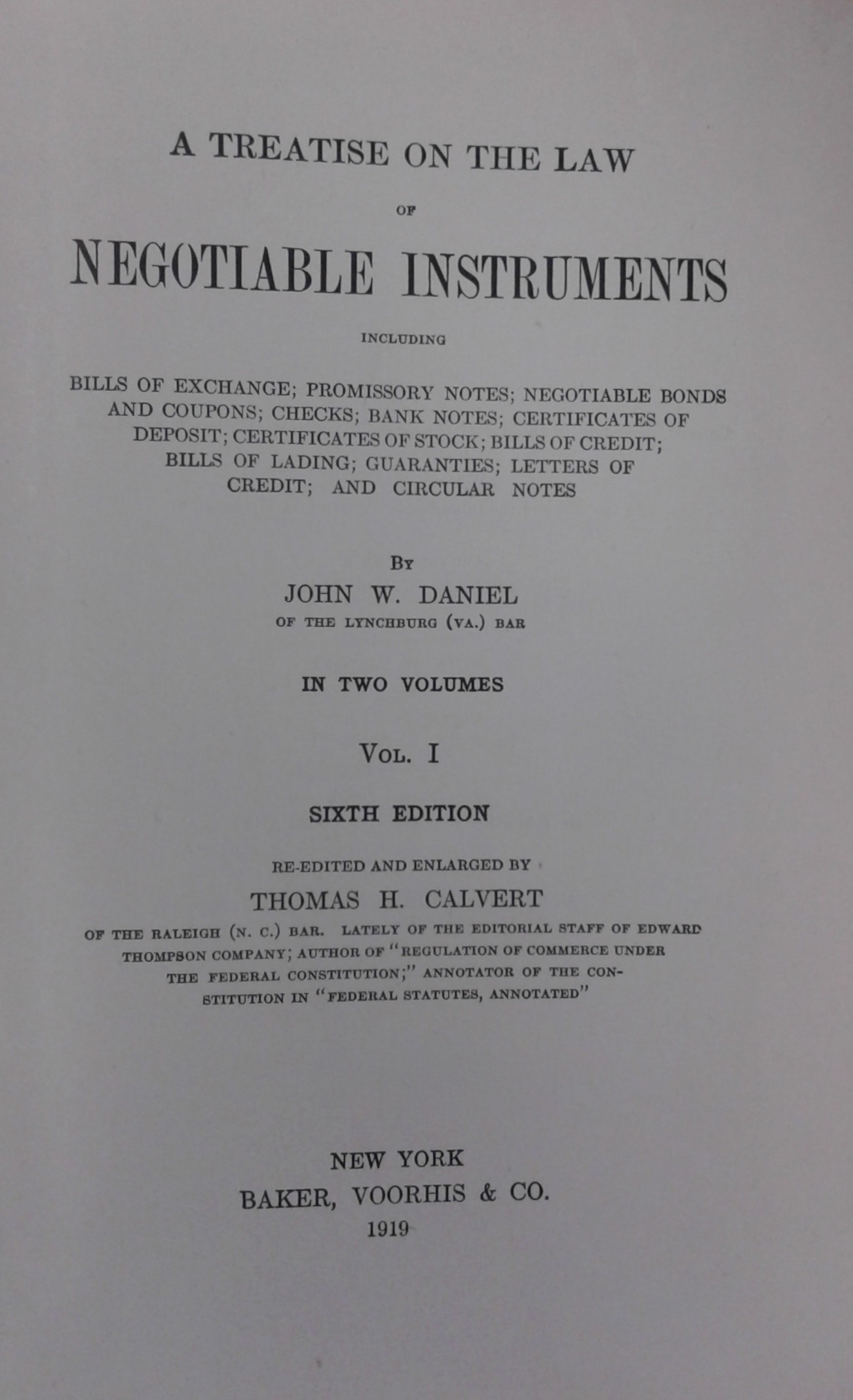 A treatise on the law of negotiable instruments. Including bills of exchange promissory notes negotiable bond and coupons checks bank notes certificates of deposit certificates of stock bills of credit bills of lading guaranties letters of credit and circular notes