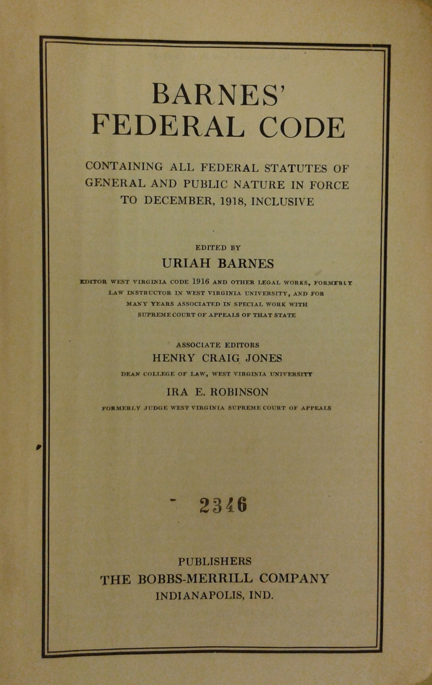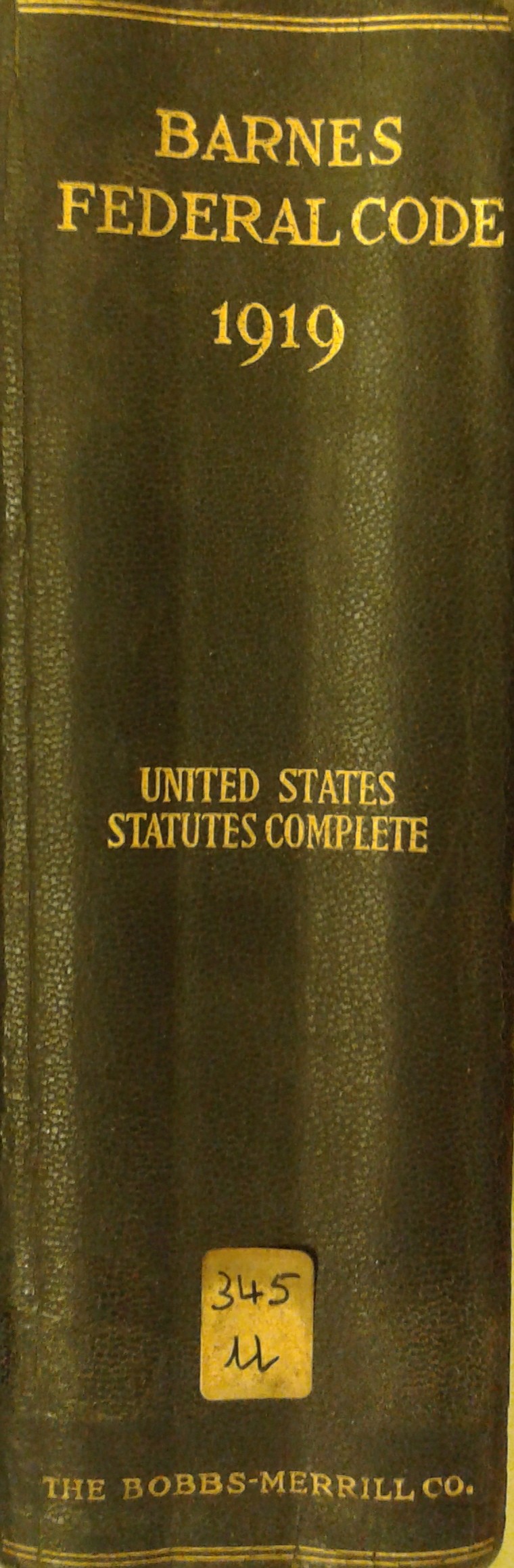 Barnes' Federal Code containing all Federal Statutes of general and public nature now in force to December 1918 inclusive