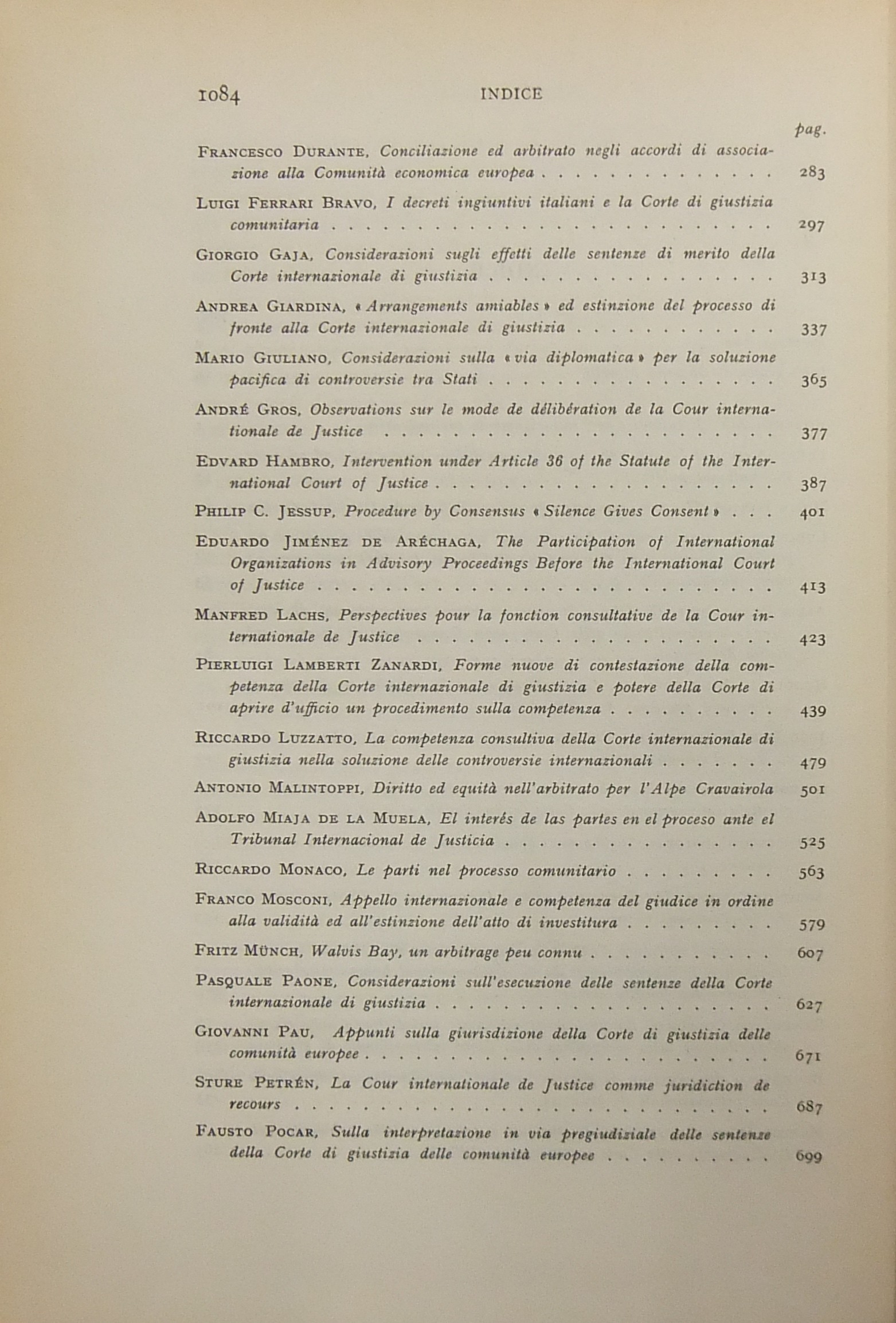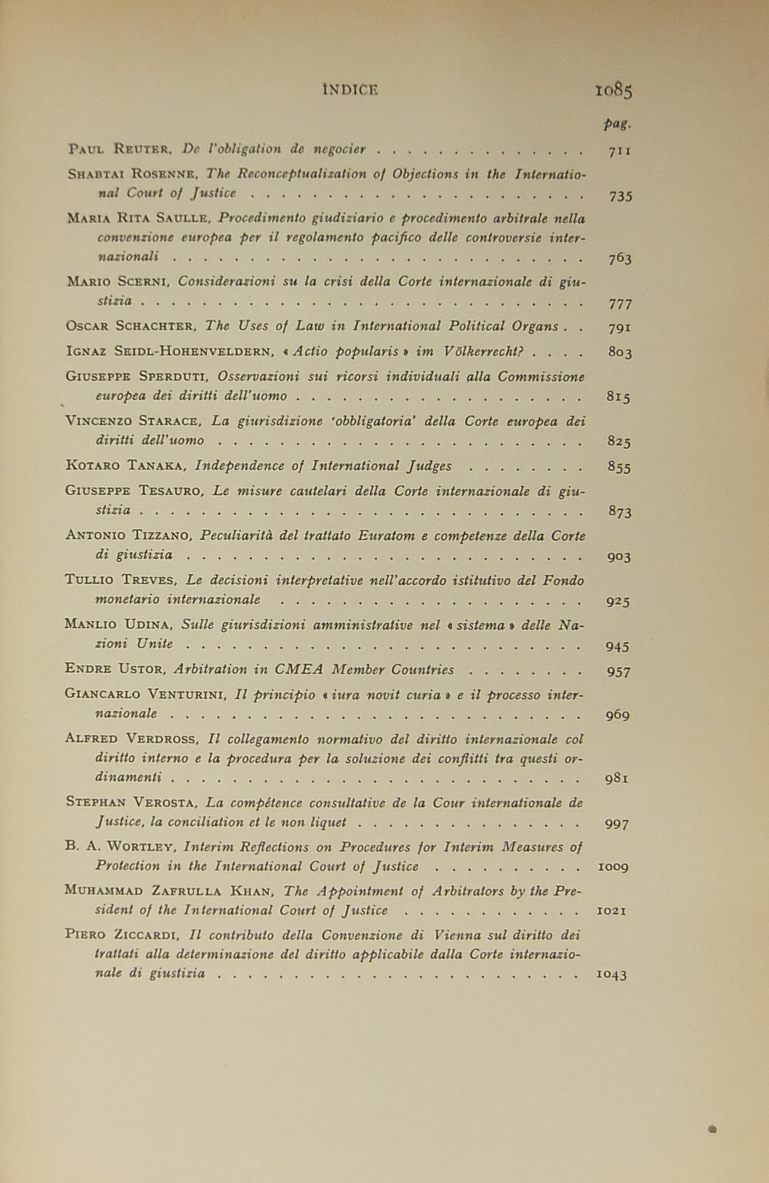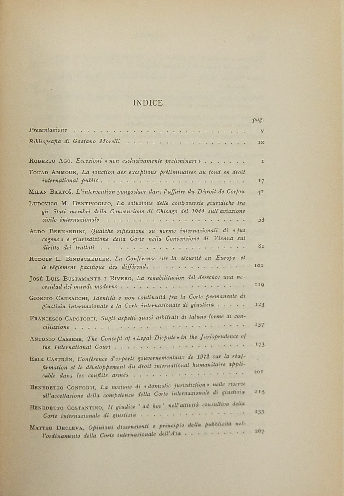 Ago R. - Cansacchi G. - Cassese A. - Decleva M. - Durante F. - Giuliano M. - Luzzatto R. - Malintoppi A. - Monaco R. - Pocar F. - Sperduti g. - Treves T. - Ziccardi p. et alii