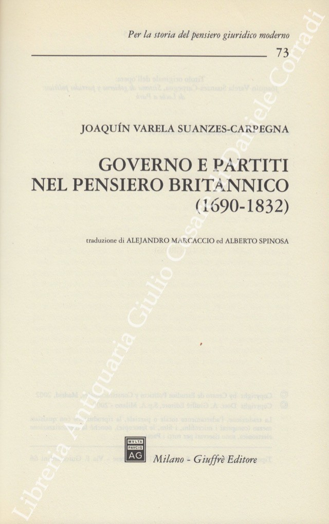 Governo e partiti nel pensiero britannico (1690-1832). Traduzione di Alejandro Marcaccio ed Alberto Spinosa