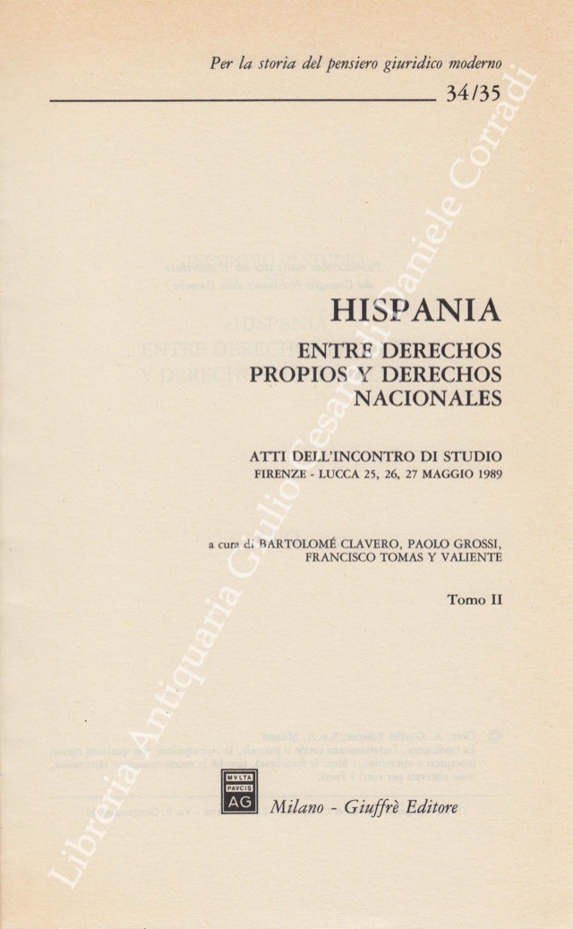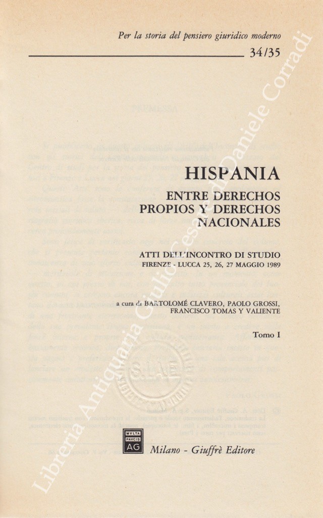 Hispania entre derechos propios y derechos nacionales. Atti dell'incontro di studio, Firenze - Lucca 25, 26, 27 maggio 1989