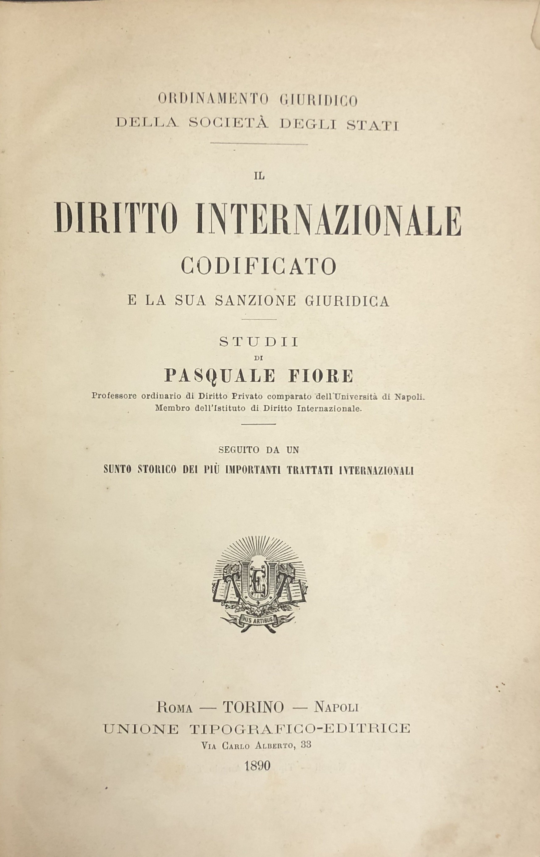 Il diritto internazionale codificato e la sua sanzione giuridica. Studii... Seguito da un sunto storico dei più importanti trattati internazionali