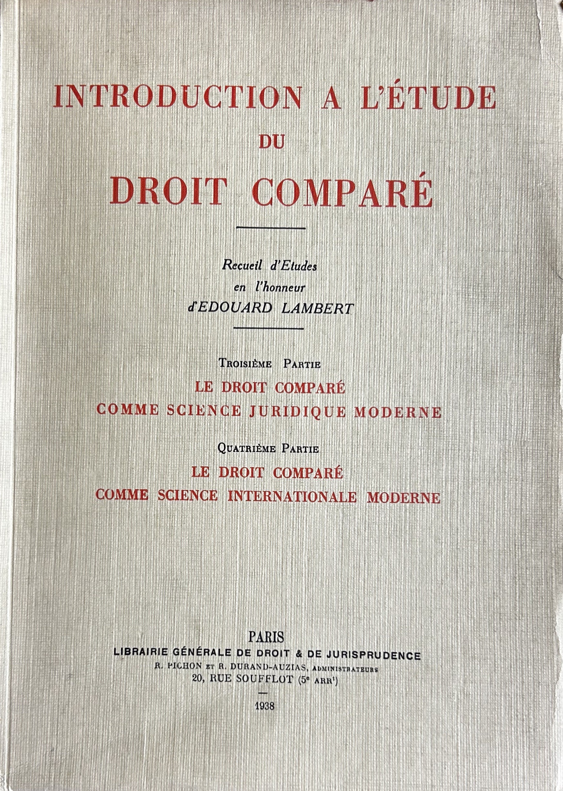 Introduction a l'etude du droit compare. Recueil d'etudes en l'honneur d'Edouard Lambert. Premiere partie - Les aspects, les fonctions et les sources du droit compare; Deuxieme partie - Instruments d'etudes du droit compare; Troisieme partie - Le droit compare comme science juridique moderne; Quatrieme partie - Le droit compare comme science internationale moderne