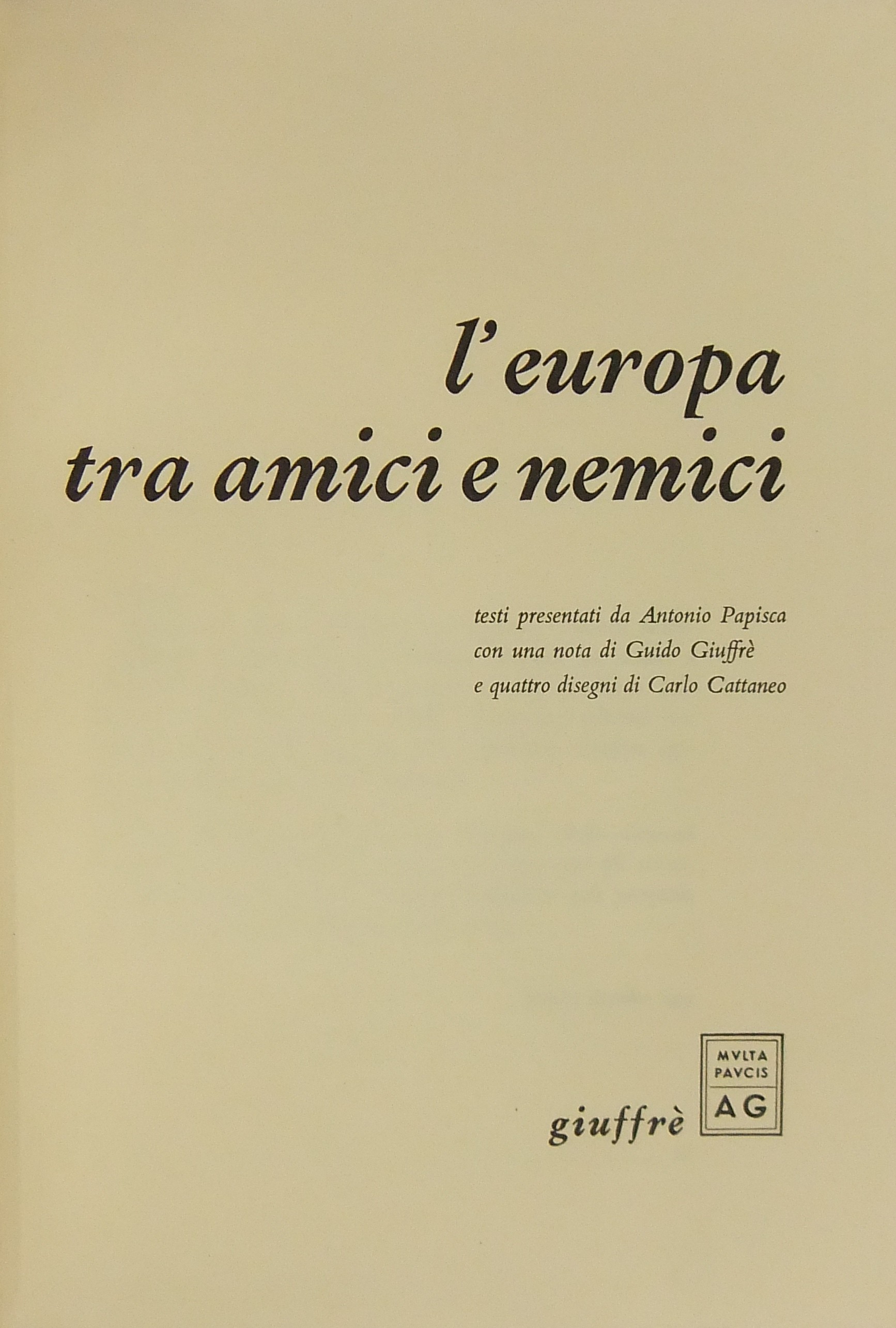 L'Europa tra amici e nemici. Testi presentati da Antonio Papisca, con una nota di Guido Giuffrè e quattro disegni di Carlo Cattaneo