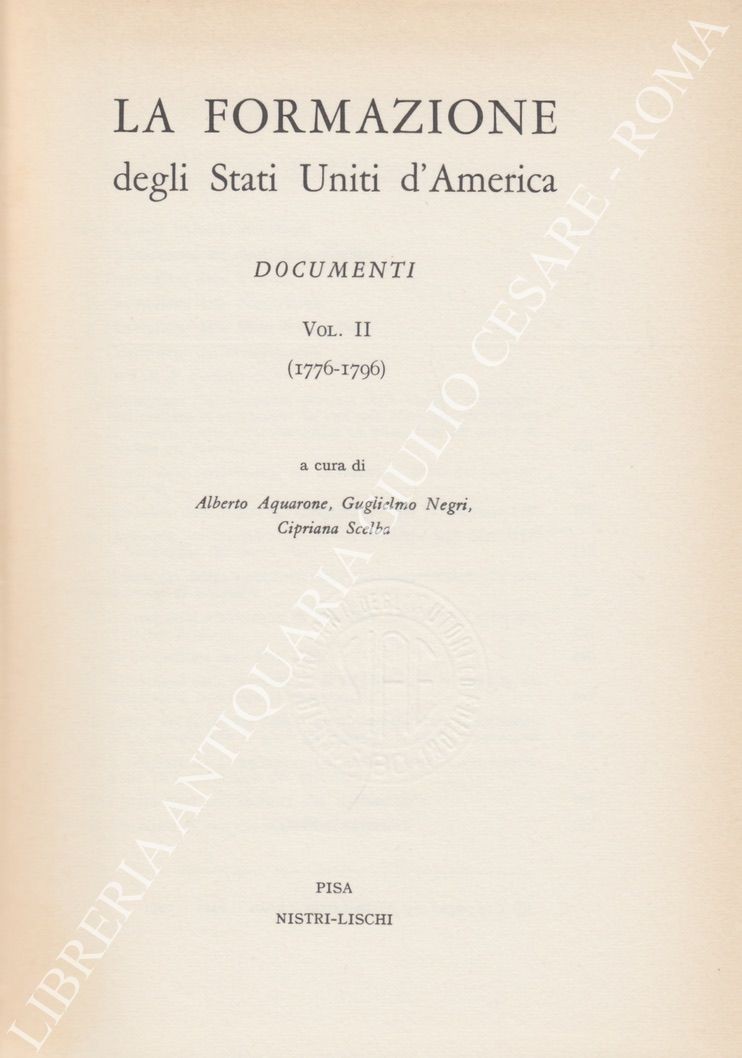 La formazione degli Stati Uniti d'America. Documenti. Vol. I -(1606-1776); Vol. II - (1776-1796)