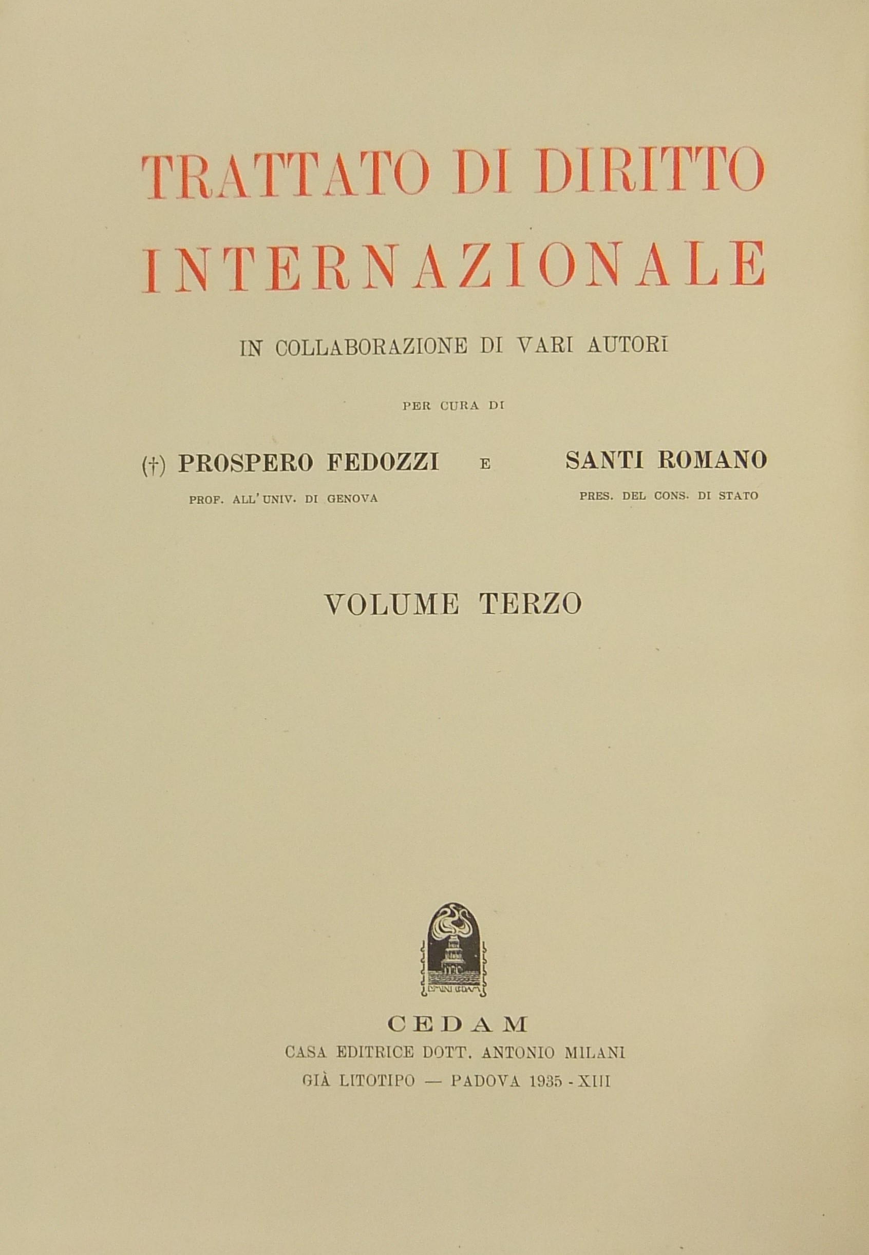 Direttore Collana: P. Fedozzi e Santi Romano
