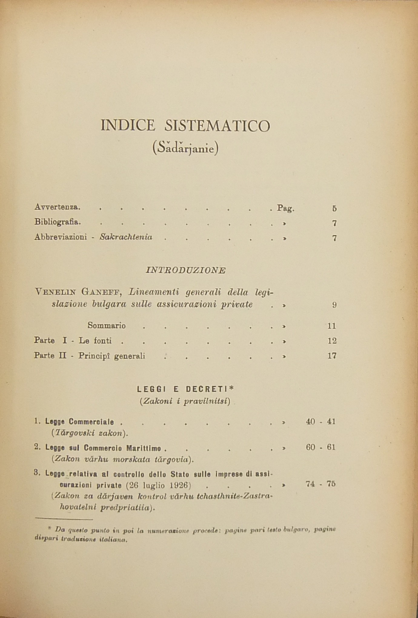 Legislazione bulgara, con uno studio introduttivo: "Lineamenti generali della legislazione bulgara sulle assicurazioni private" di Venelin Ganeff