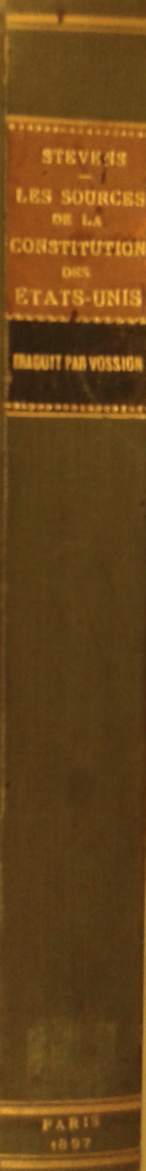 Les sources de la Constitution des Etats-Unis etudiees dans leurs rapports avec l'histoire de l'Angleterre et de ses colonies. Traduit sur la derniere edition anglaise et americaine par Louis Vossion