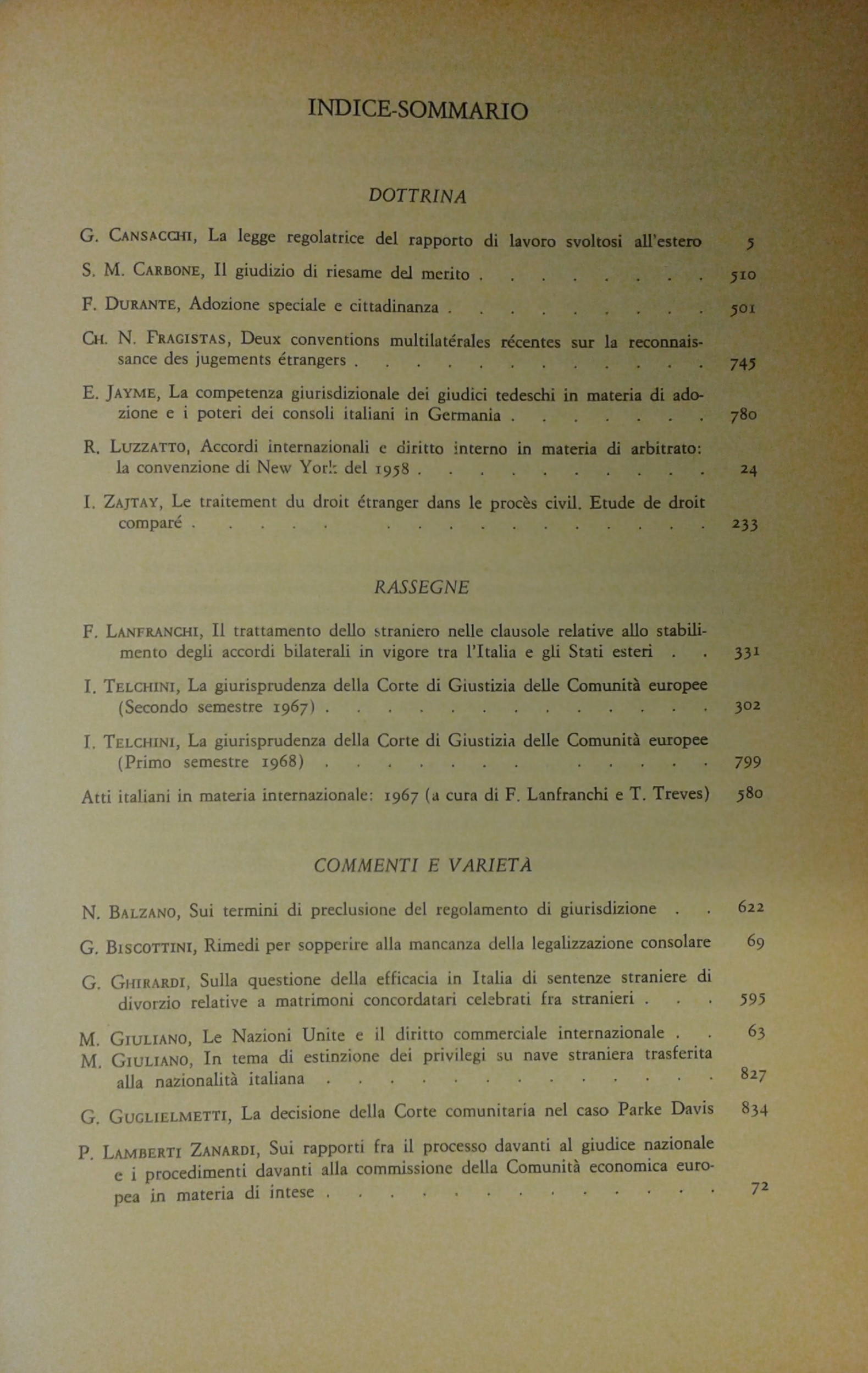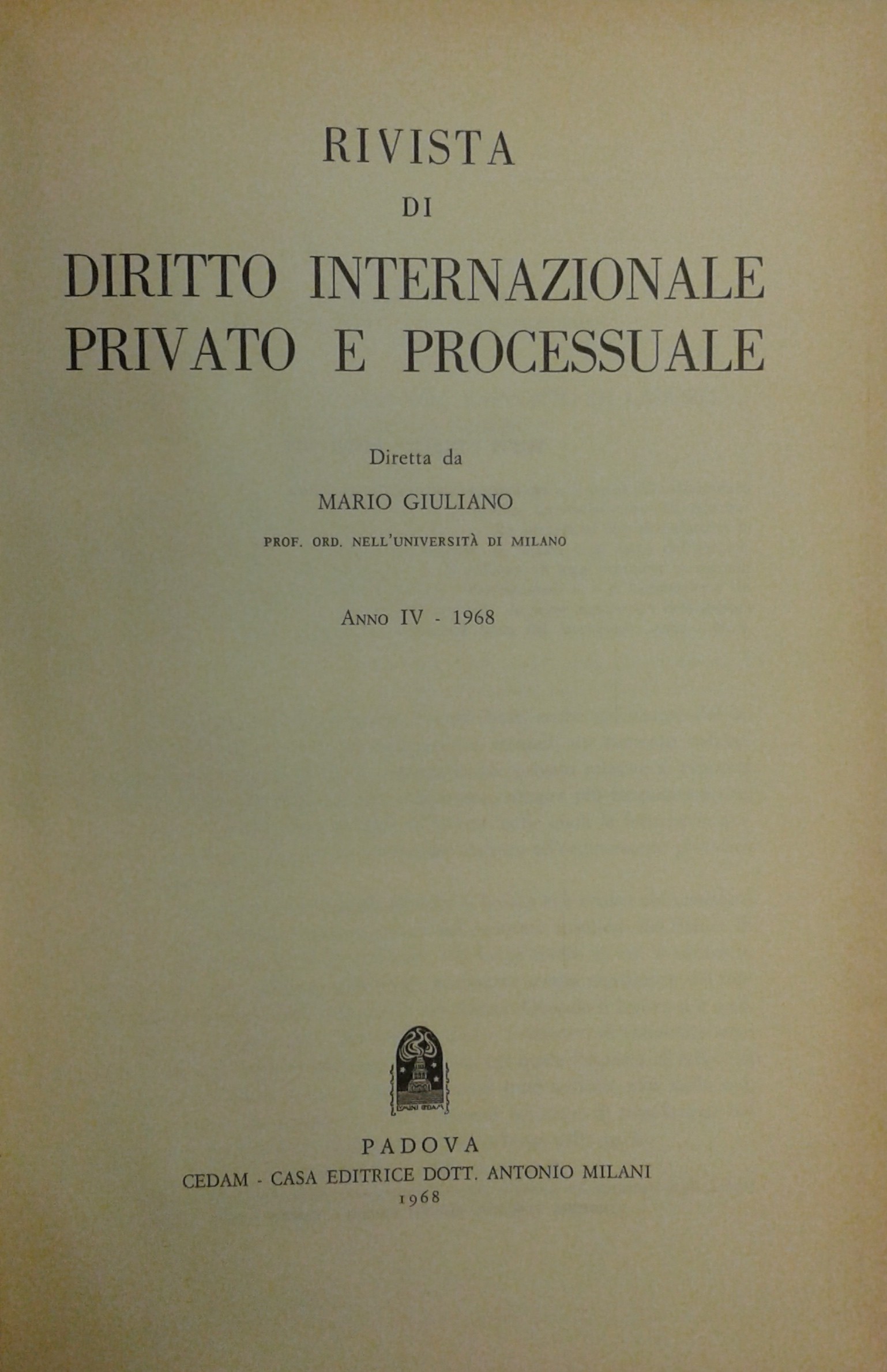 Rivista di diritto internazionale privato e processuale. Diretta da Mario Giuliano. Anno IV - 1968
