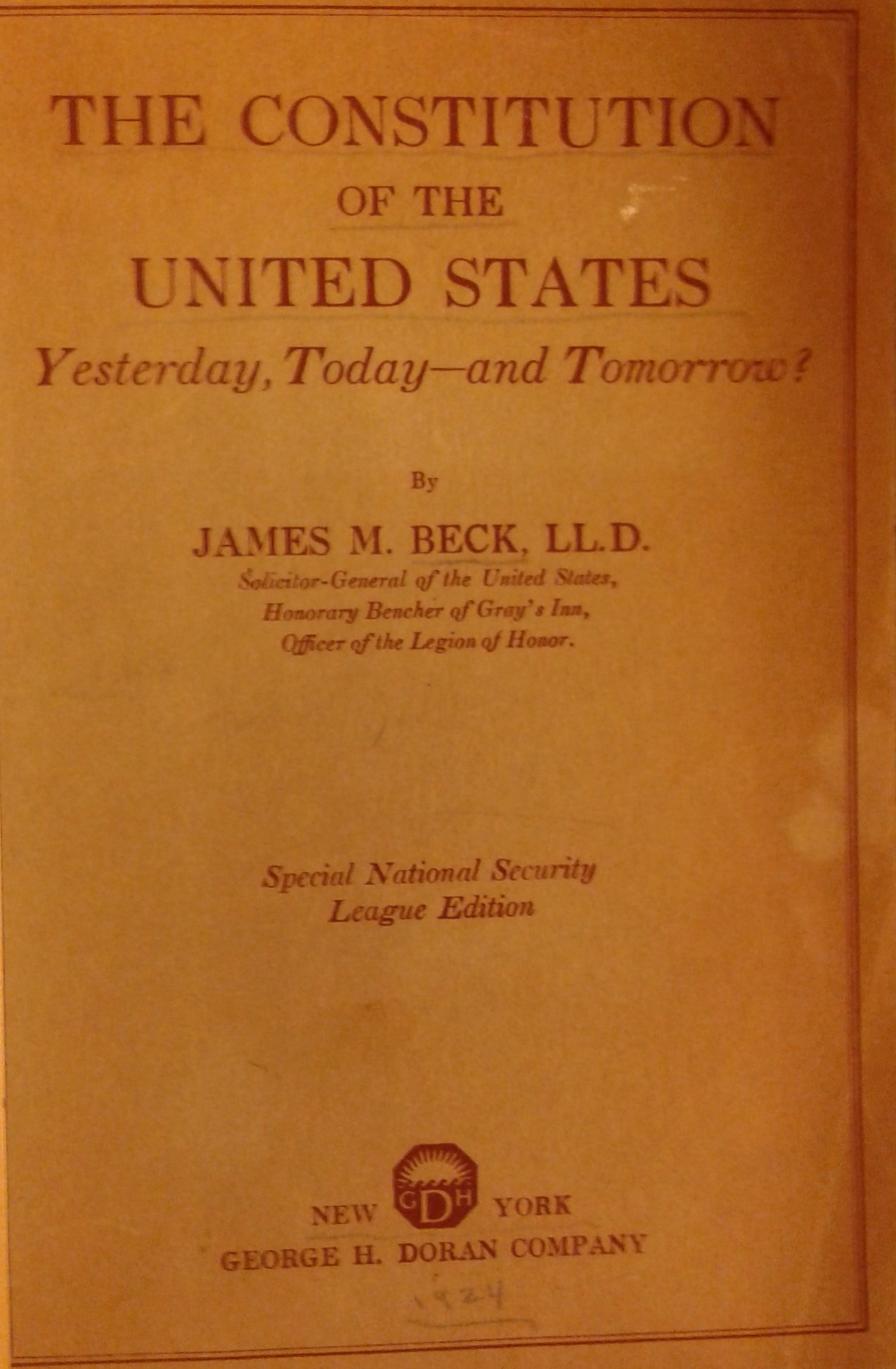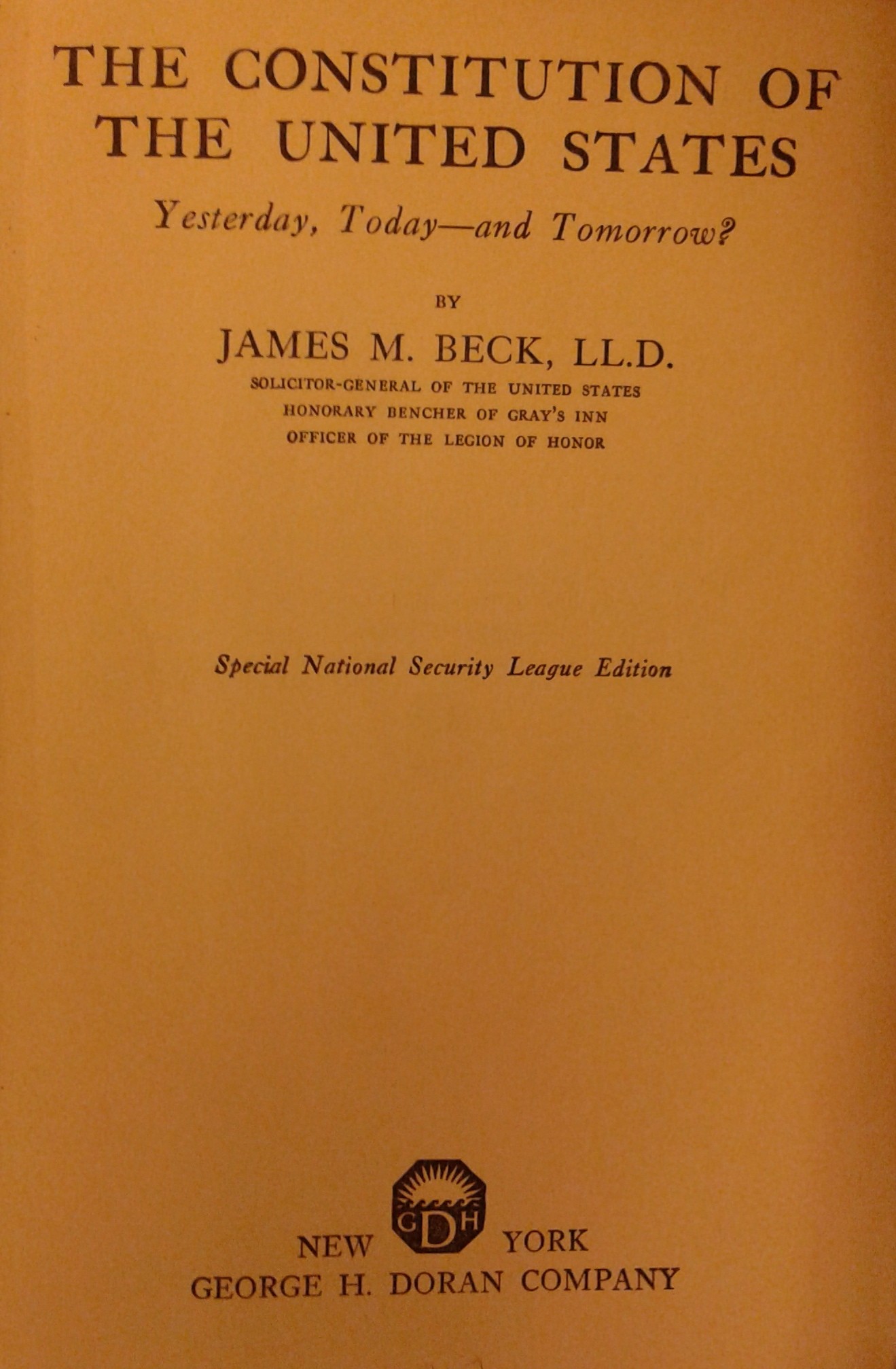 The Constitution of the United States. Yesterday today and tomorrow