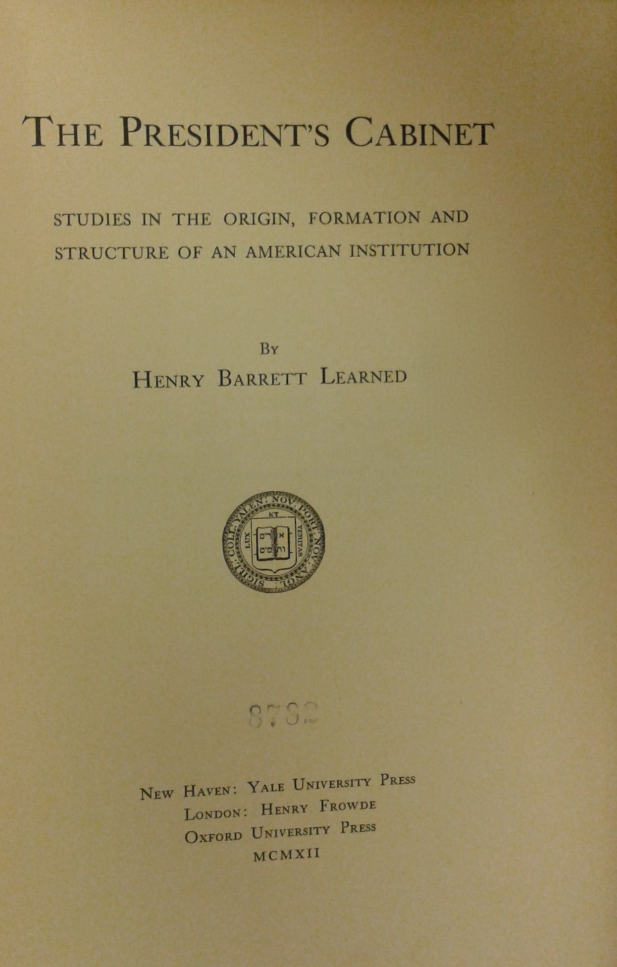 The president's cabinet. Studies in the origin formation and structure of an american institution