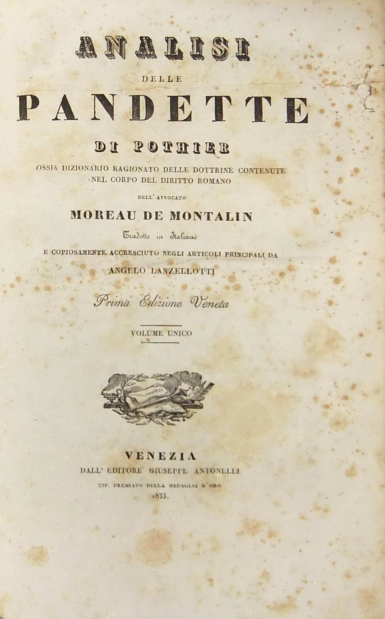 Analisi delle Pandette di Pothier ossia dizionario ragionato delle dottrine contenute nel corpo del diritto romano. Tradotto in italiano e copiosamente accresciuto negli articoli principali da Angelo Lanzellotti