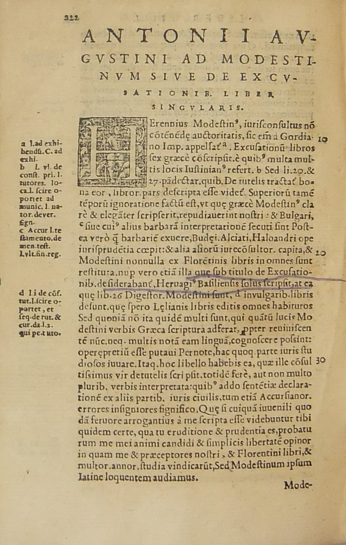 Emendationum, & opinionu Lib. IIII. Eiusdem ad Modestinum siue de excus. Liber singularis. Item, Laelij Taurelli, Ad Gallum, & legem Velleam, Ad Catonem, & Paulum, De militiis excasu. Omnia quidem secundum Pand. Flo. editionem