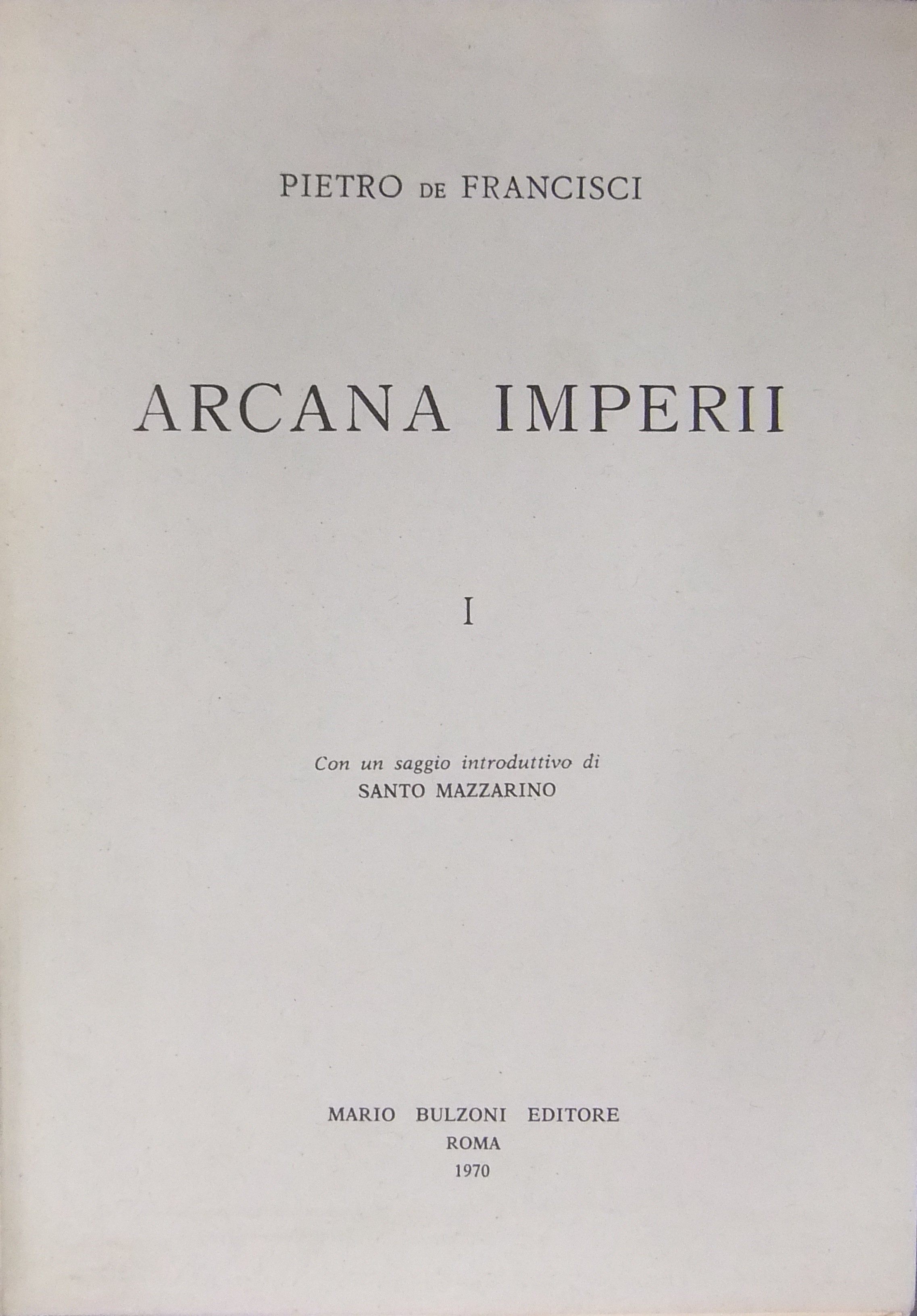 Arcana Imperii. Con un saggio introduttivo di Santo Mazzarino. Vol. I - Introduzione; Le civiltà del prossimo Oriente; La Grecia dalle origini agli albori delle oligarchie. Vol. II - La Grecia dalle prime oligarchie al tramonto della "polis"; Il regno di Macedonia; Alessandro; Gli stati ellenistici. Vol. III,1 - Roma. Vol. III,2 - Roma; L'eredità di Roma; Finale