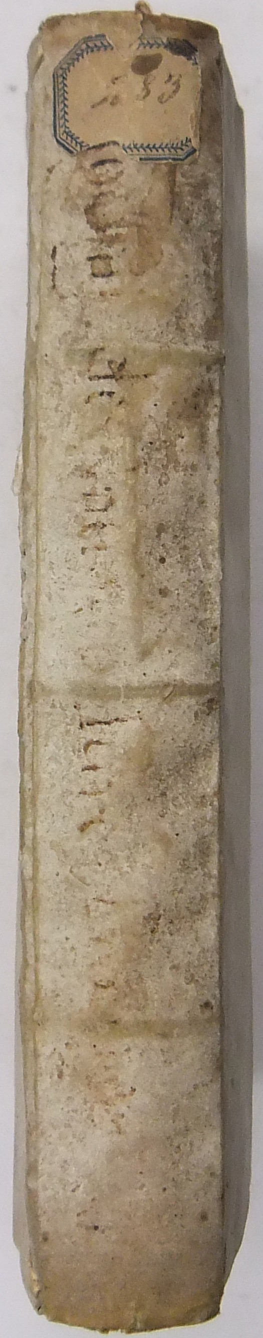 Rilegatura: p.perg. morbida coeva con titolo manoscritto al dorso