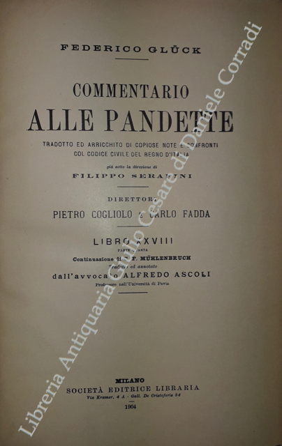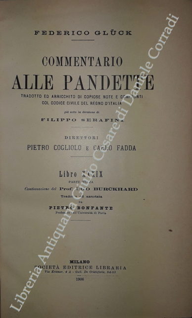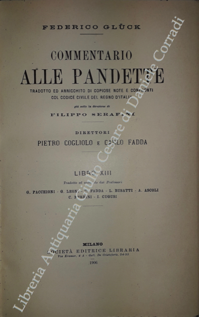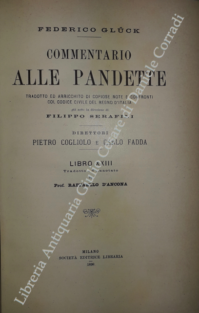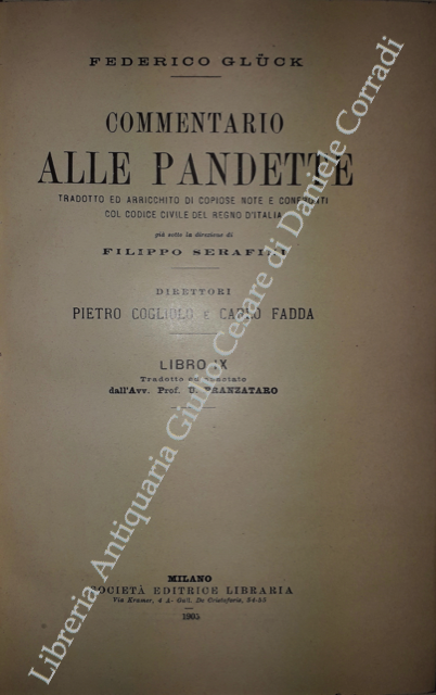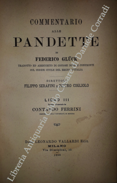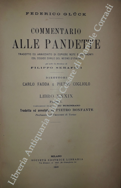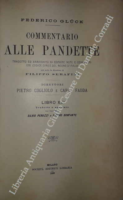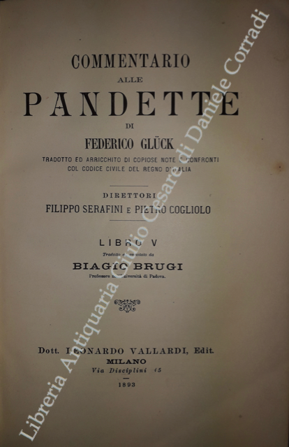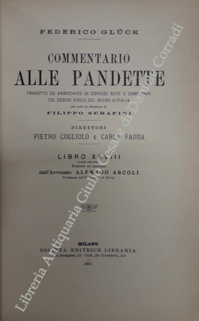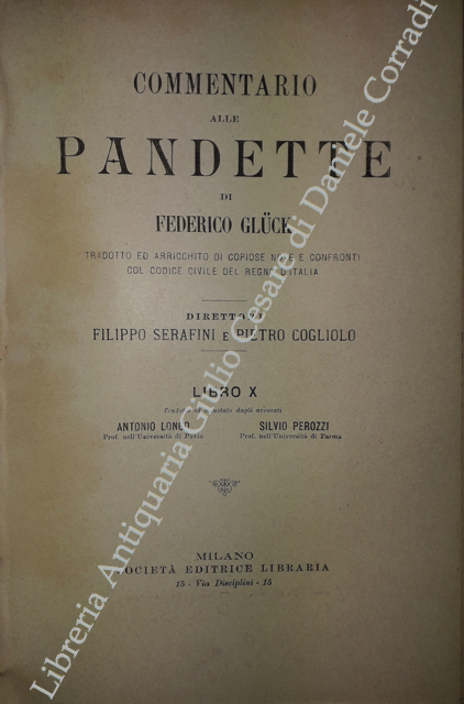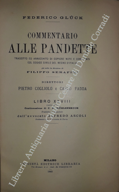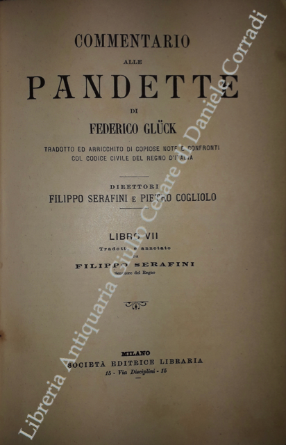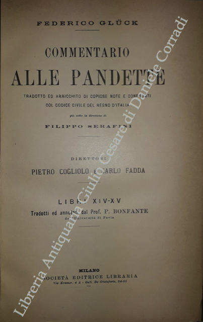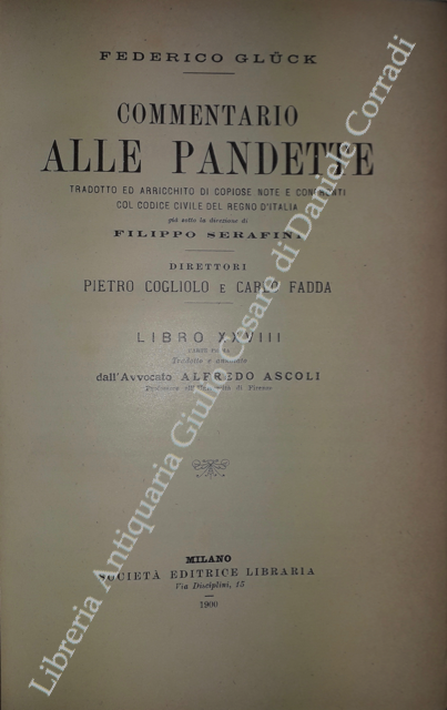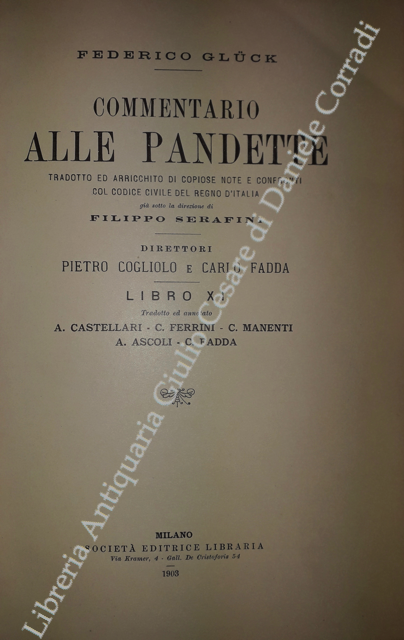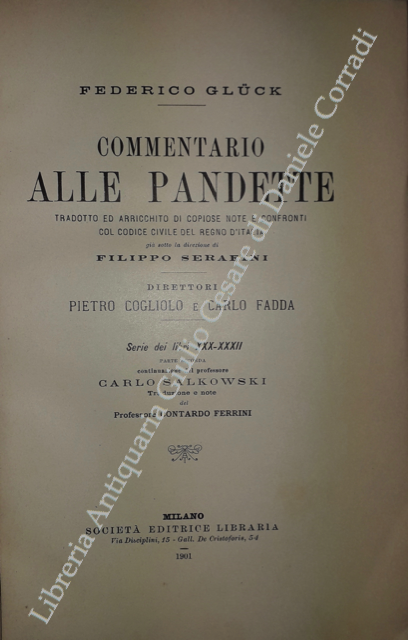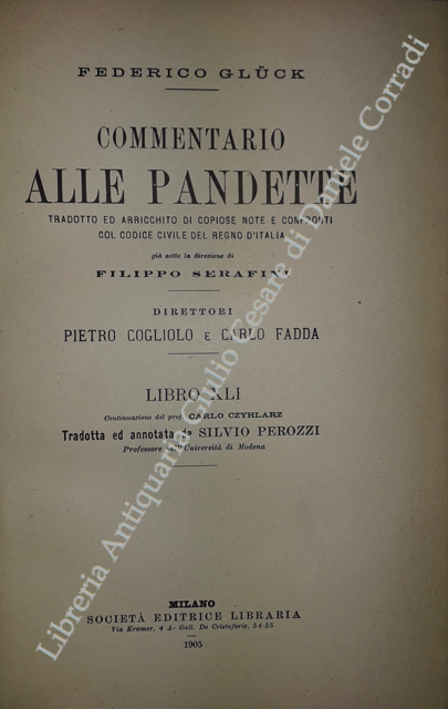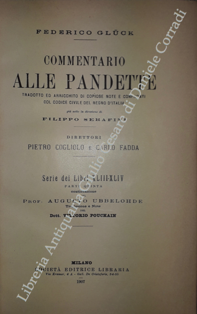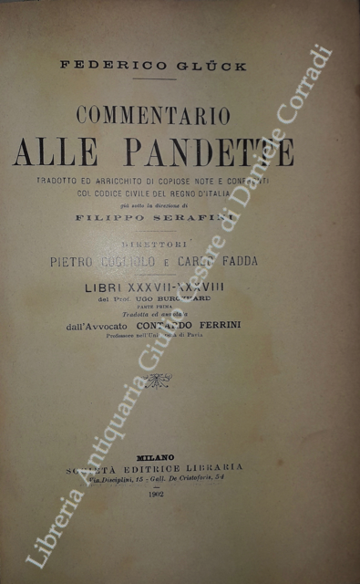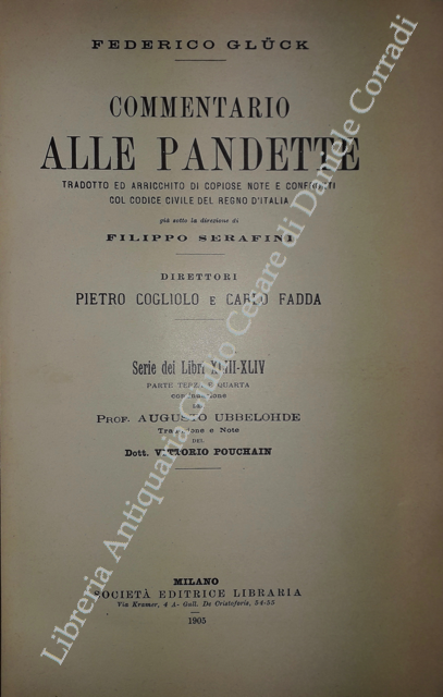 Commentario alle Pandette. Tradotto ed arricchito di copiose note e confronti col Codice civile del Regno d'Italia. Direttori: Filippo Serafini e Pietro Cogliolo (poi Pietro Cogliolo e Carlo Fadda)