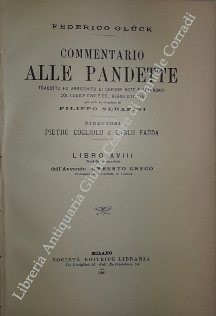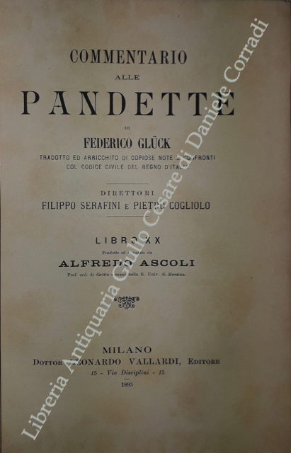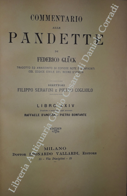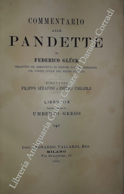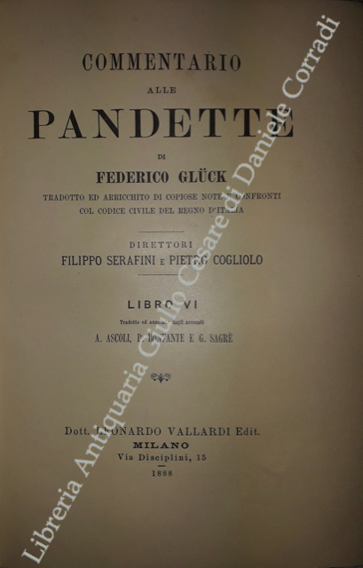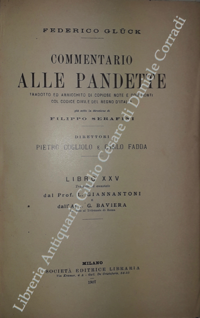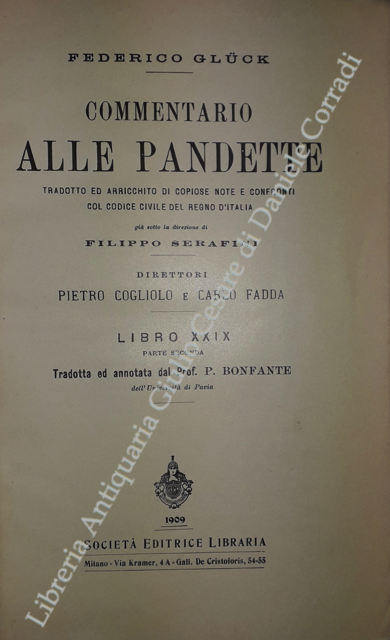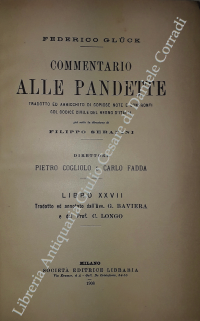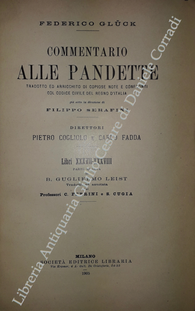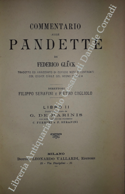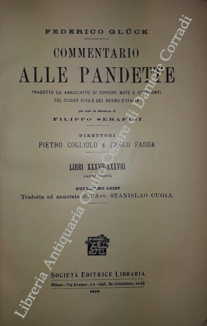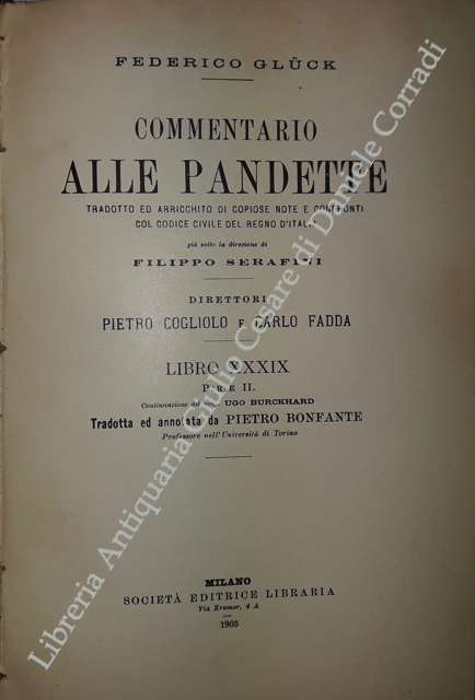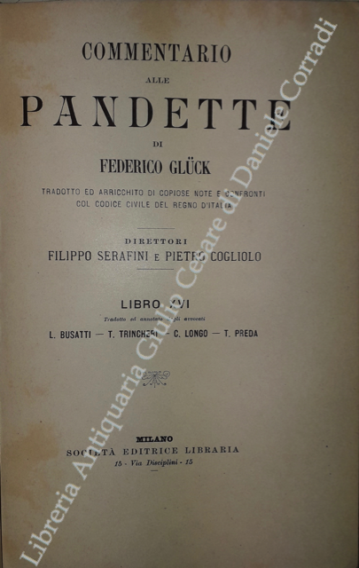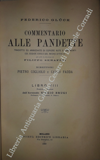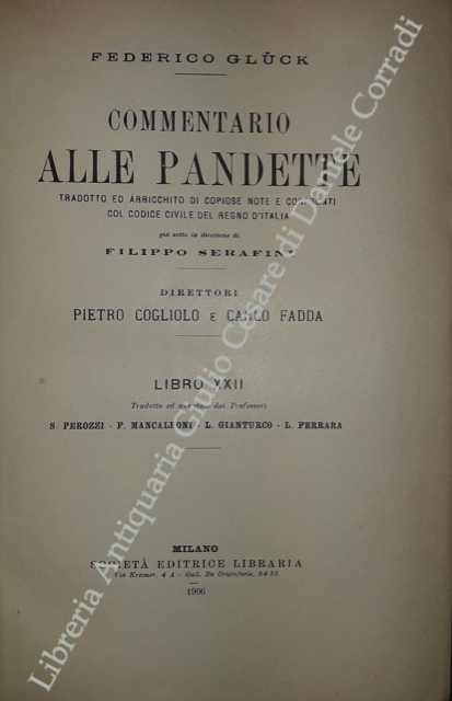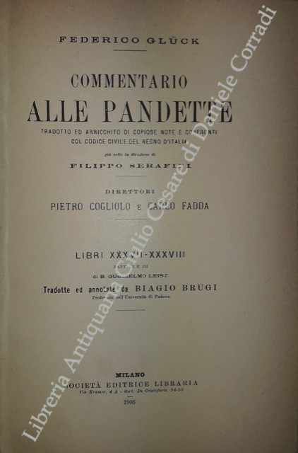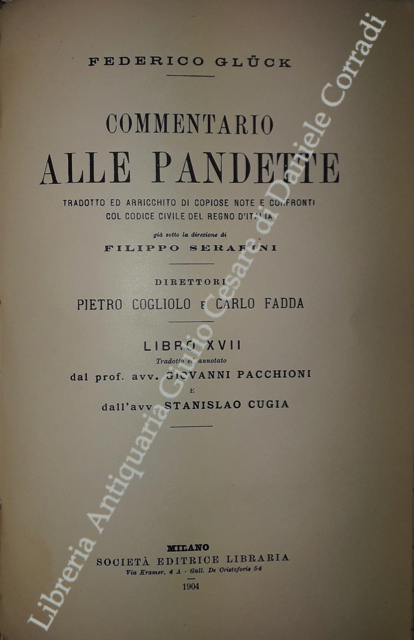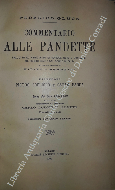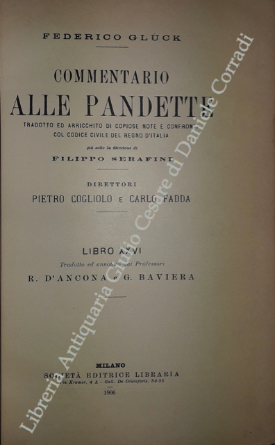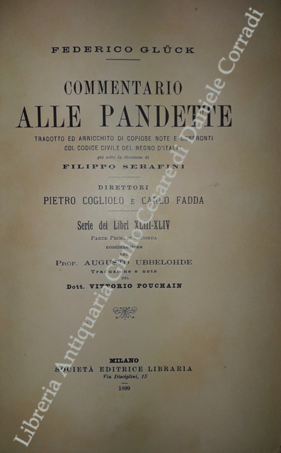 Commentario alle Pandette. Tradotto ed arricchito di copiose note e confronti col Codice civile del Regno d'Italia. Direttori: Filippo Serafini e Pietro Cogliolo (poi Pietro Cogliolo e Carlo Fadda)