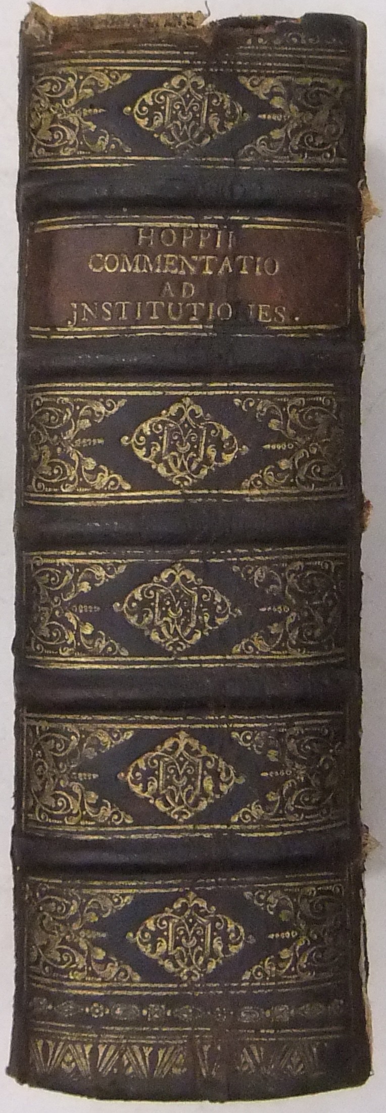 Rilegatura: p.pelle cordonata coeva con tass. titoli e fregi oro al dorso