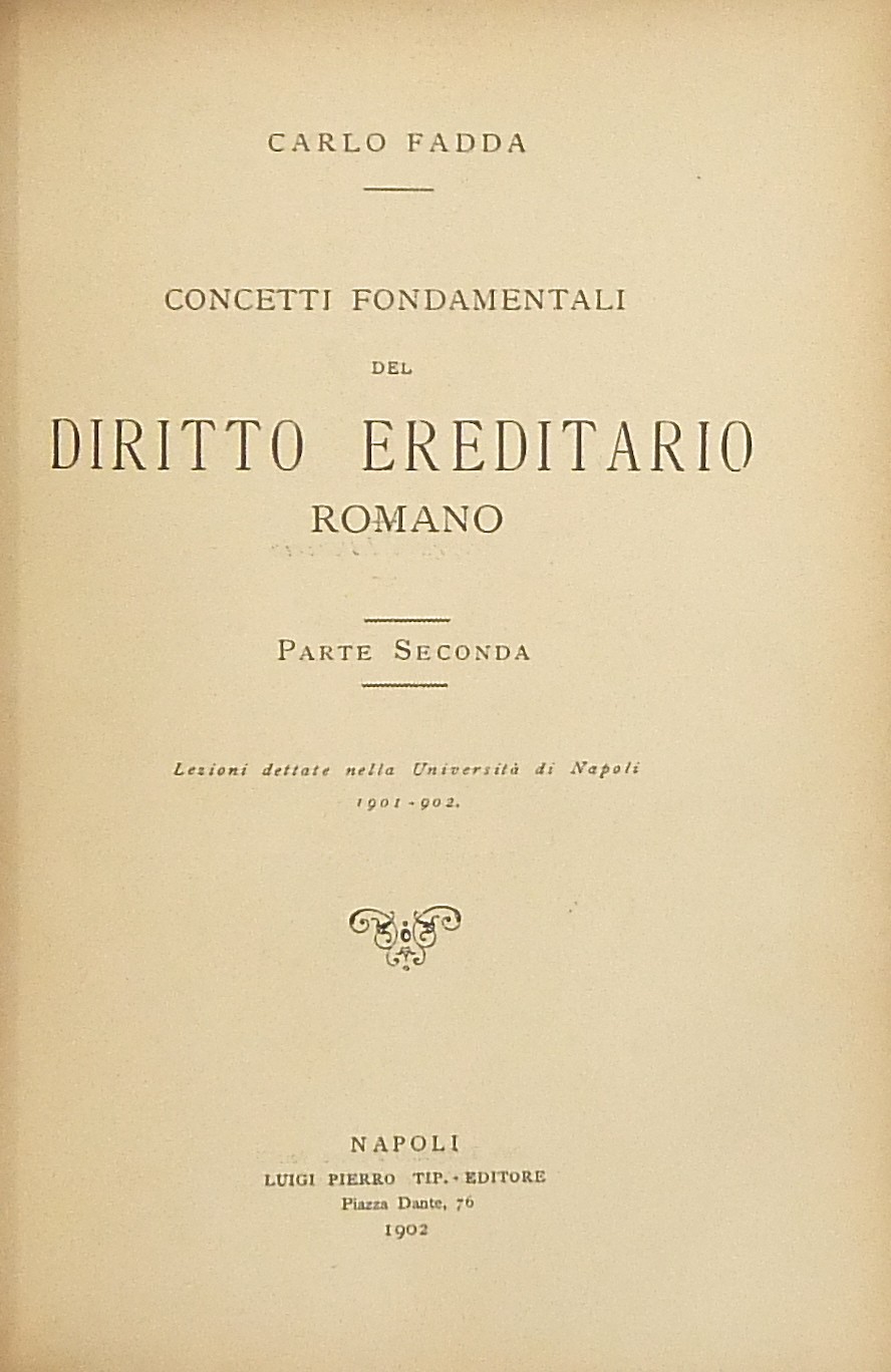 Concetti fondamentali del diritto ereditario romano. Parte I - Lezioni dettate nella Università di Napoli 1899-900. Parte II - Lezioni dettate nella Università di Napoli 1901-902