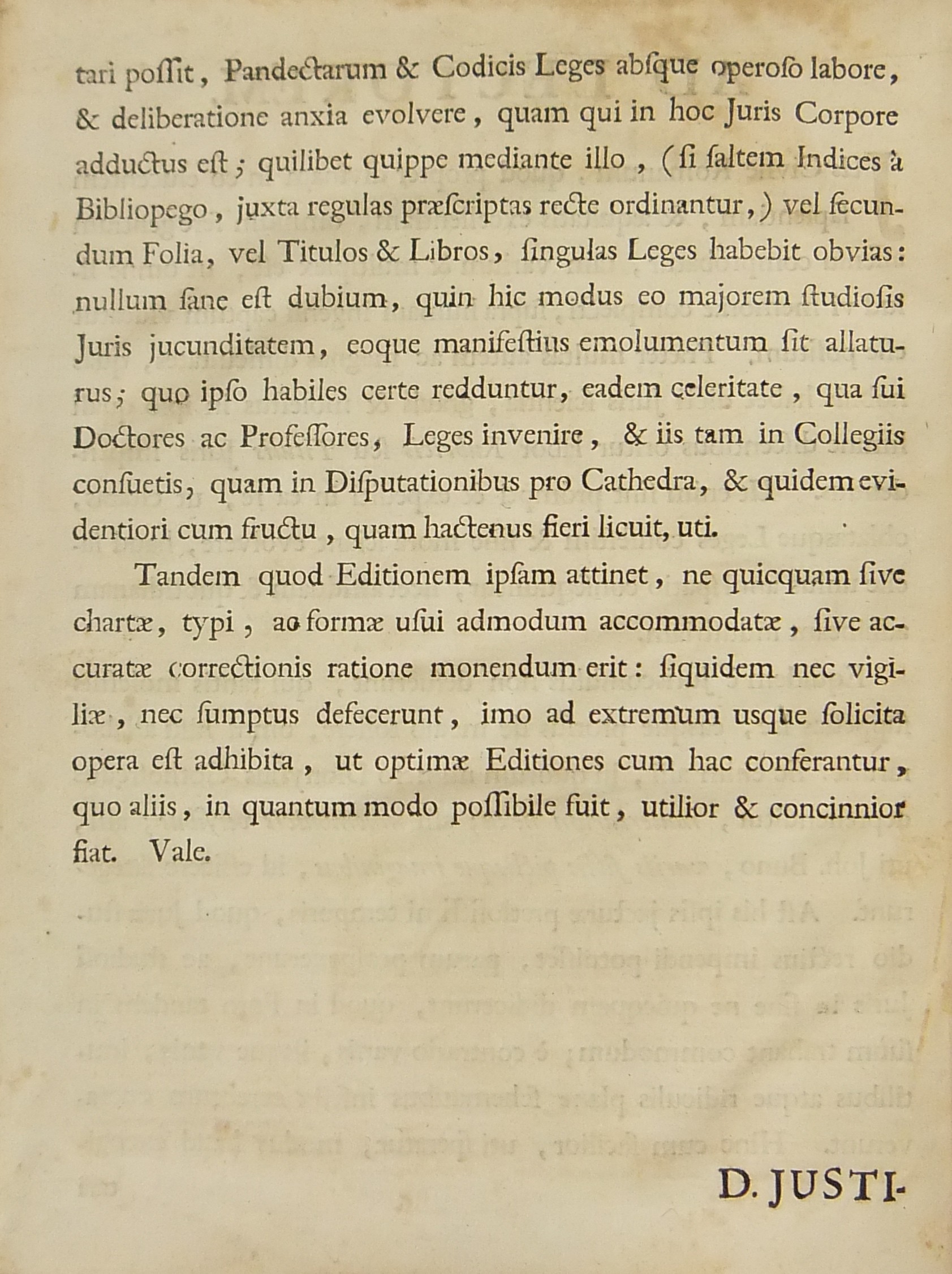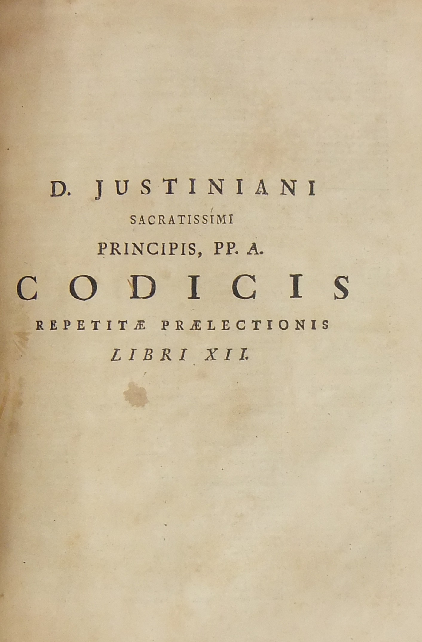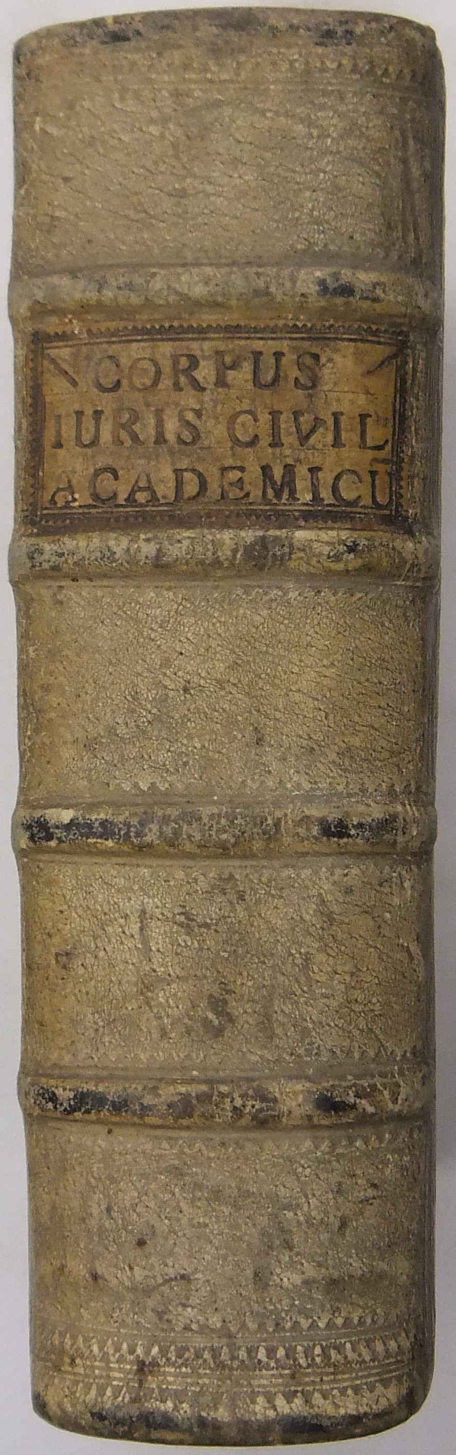Corpus Juris Civilis academicum, in suas partes distributum, usuique moderno ita accomodatum, ut nunc studiosorum quivis, etiam tyro, uno quasi intuitu, omnes leges Digestorum et Codicis, omnesque titulos Institutionum invenire possit