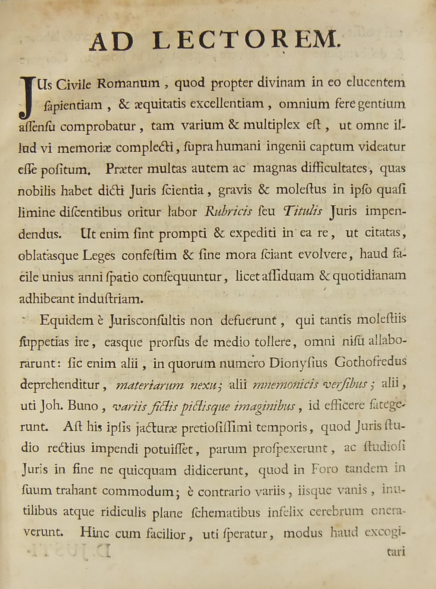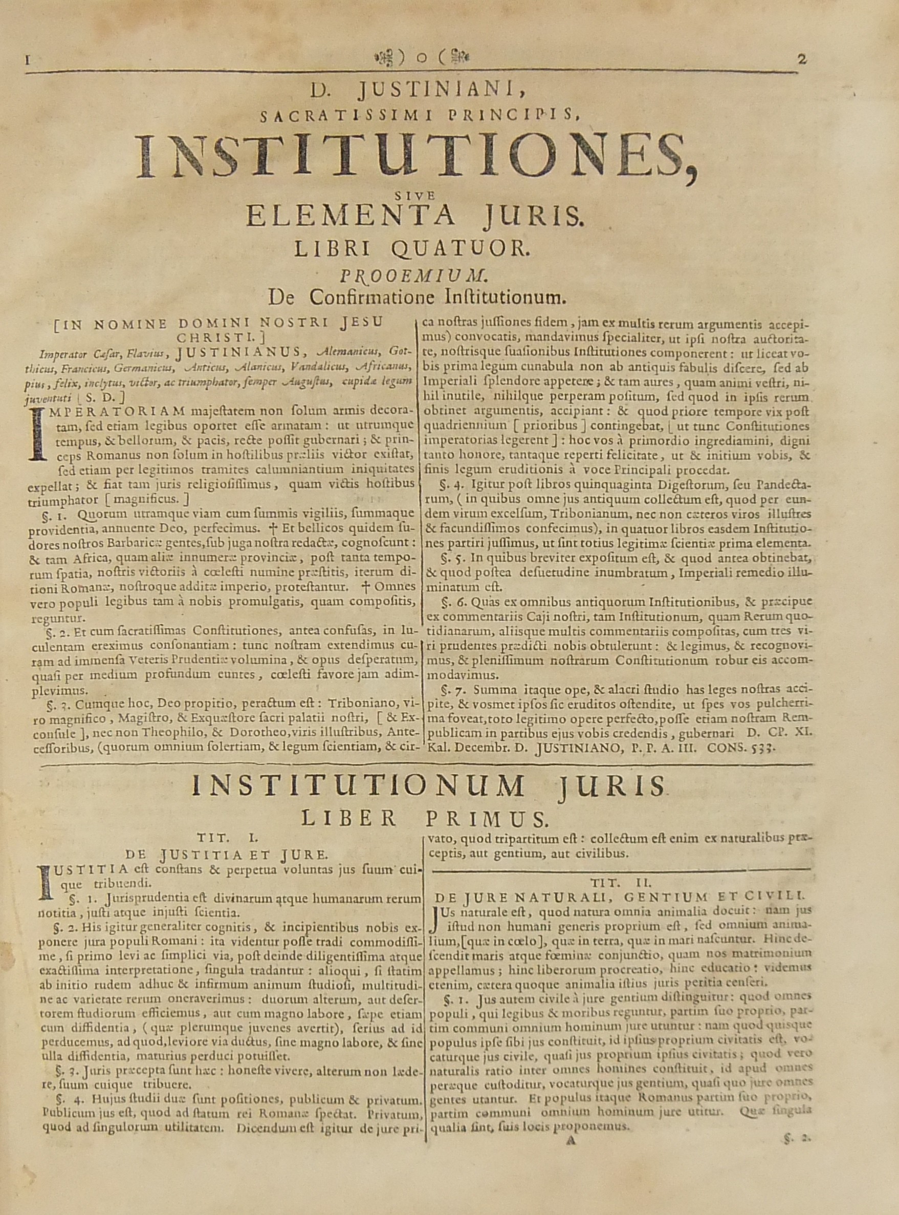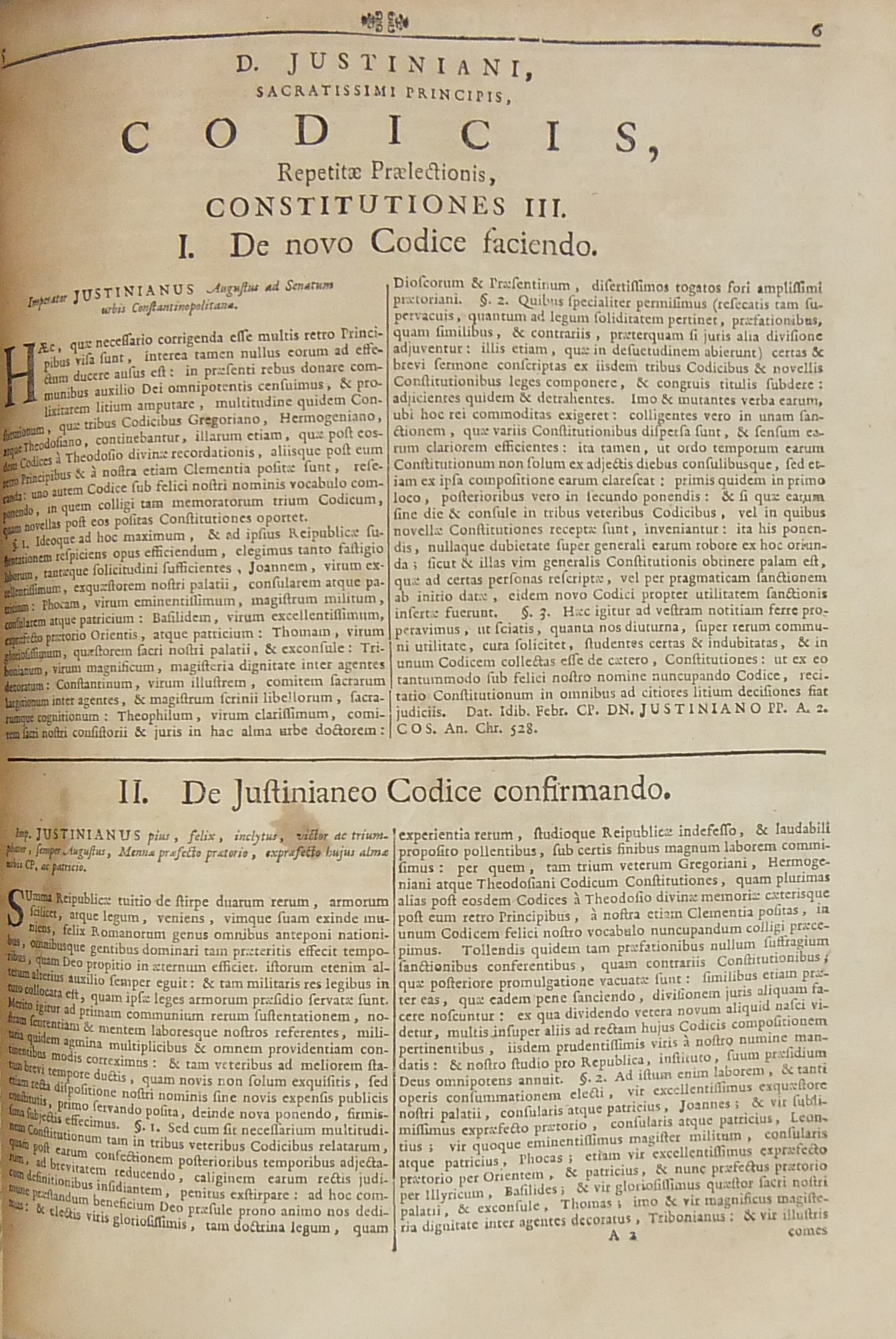 Corpus Juris Civilis academicum, in suas partes distributum, usuique moderno ita accomodatum, ut nunc studiosorum quivis, etiam tyro, uno quasi intuitu, omnes leges Digestorum et Codicis, omnesque titulos Institutionum invenire possit