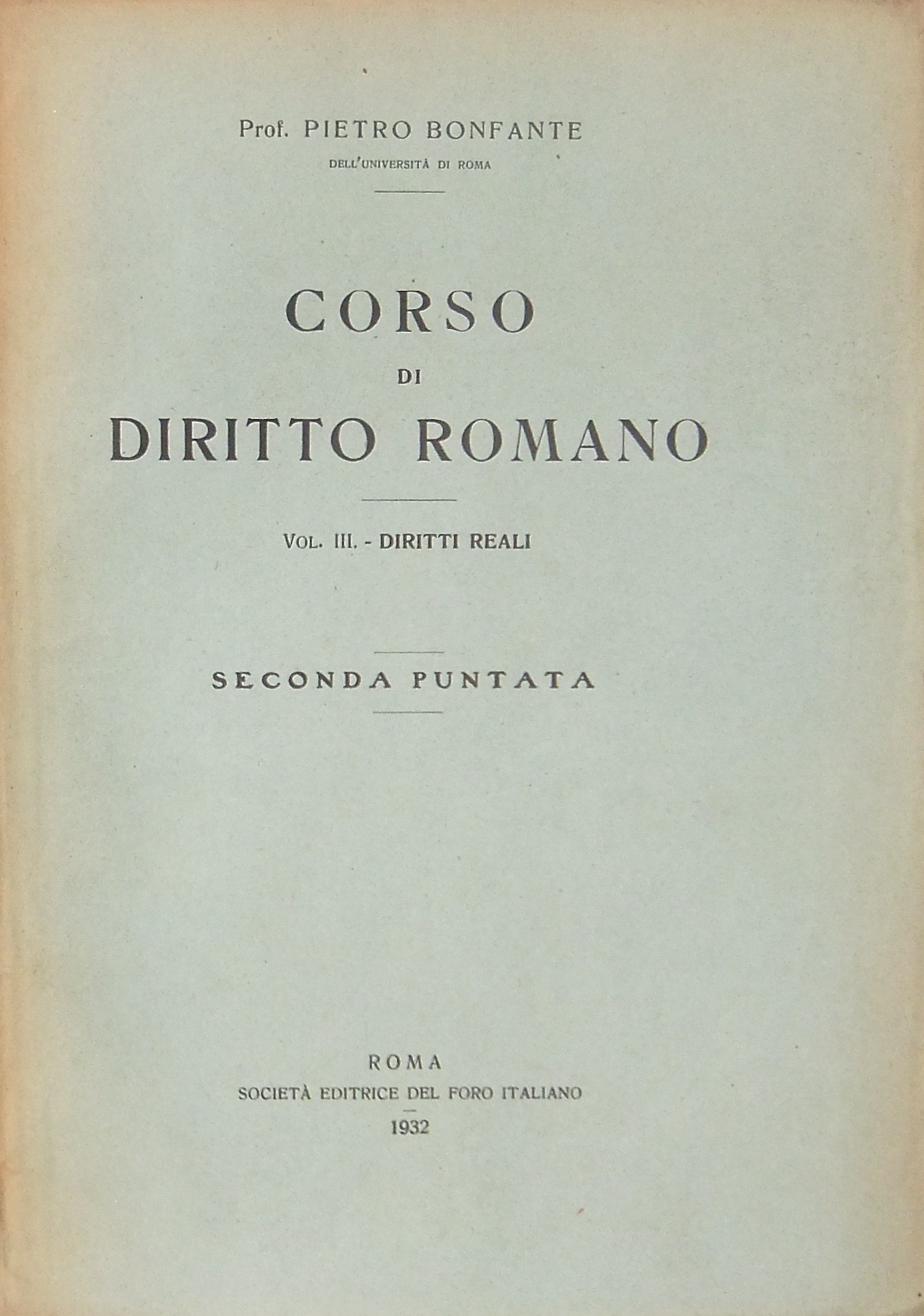 Corso di diritto romano. Vol. III - Diritti reali. Prima puntata. Seconda puntata. (Unici pubblicati)