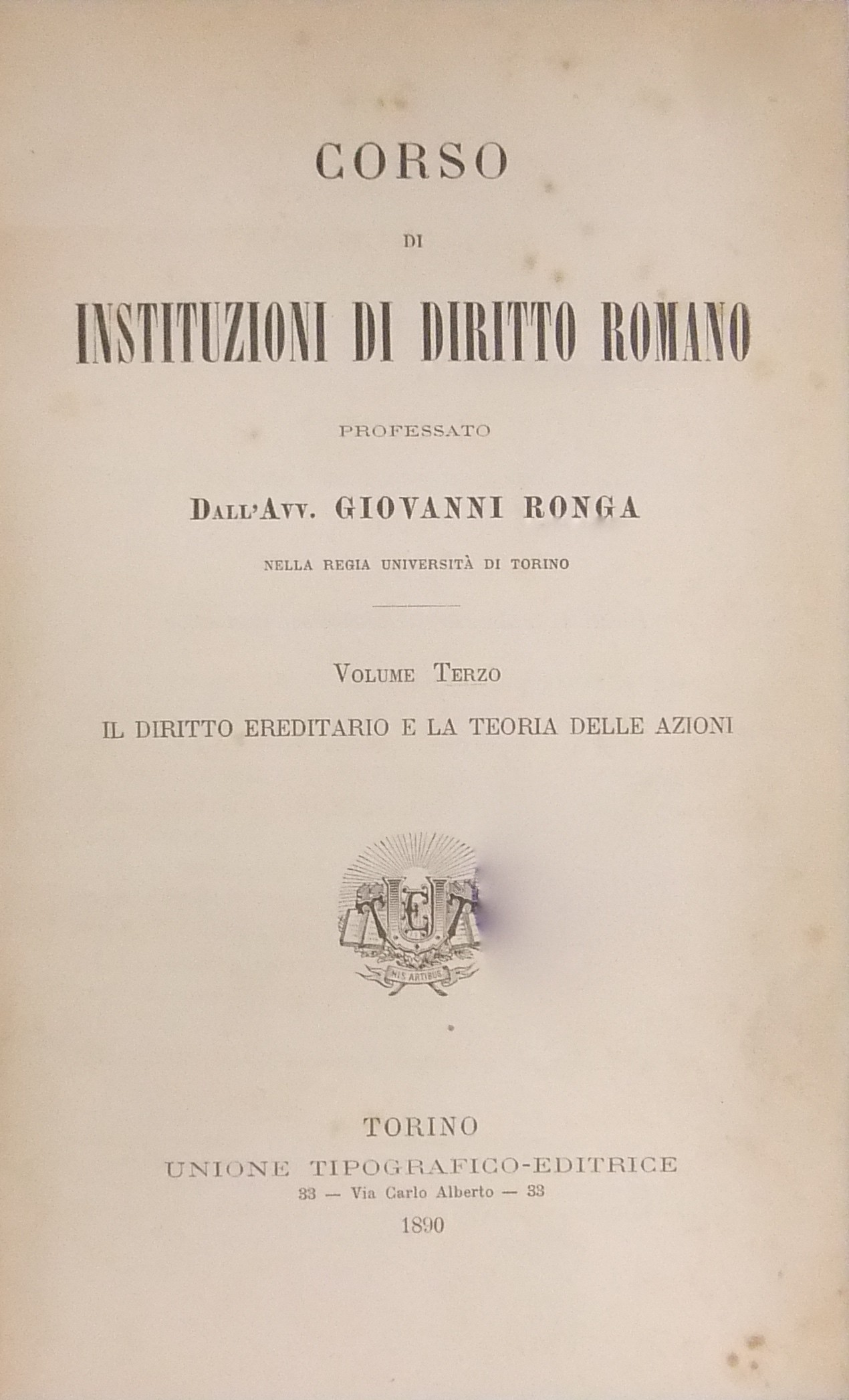 Corso di instituzioni di diritto romano. Vol. I - Delle persone e dei diritti sulle cose. Vol. II - Teoria delle obbligazioni. Vol. III - Il diritto ereditario e la teoria delle azioni.