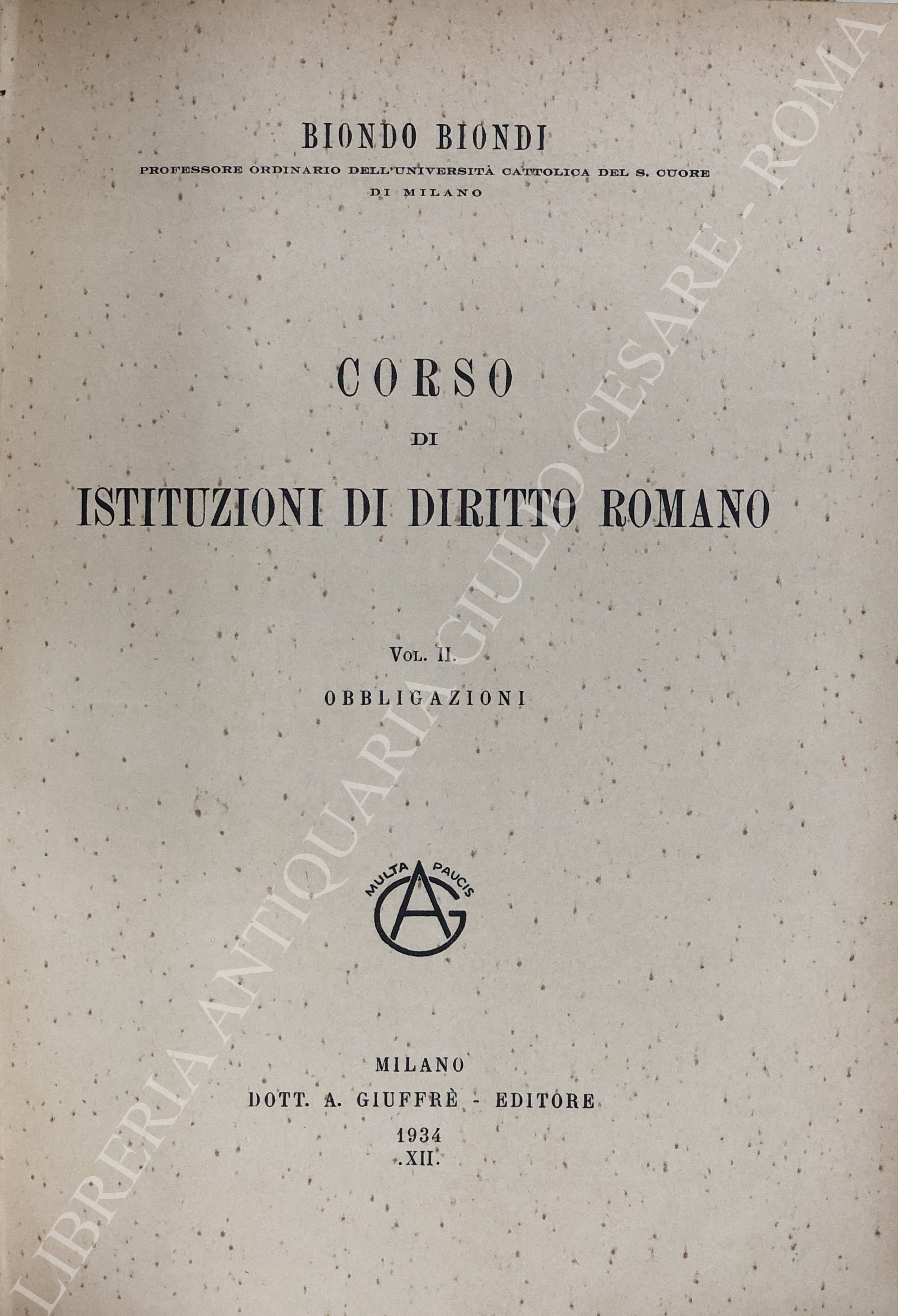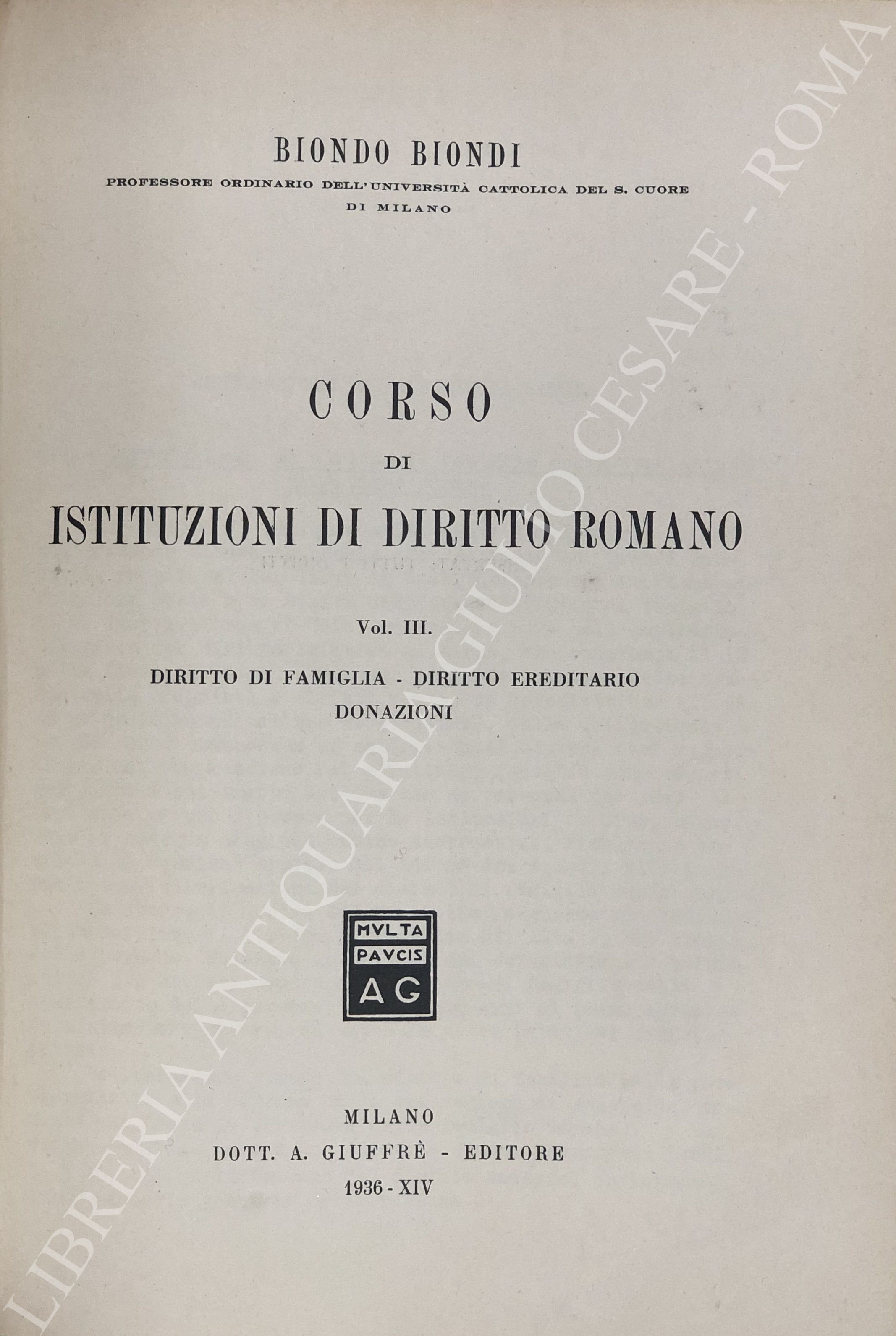 Corso di istituzioni di diritto romano. Vol. I - Introduzione. Parte generale; Diritti reali. Vol. II - Obbligazioni. Vol. III - Diritto di famiglia; Diritto ereditario; Donazioni