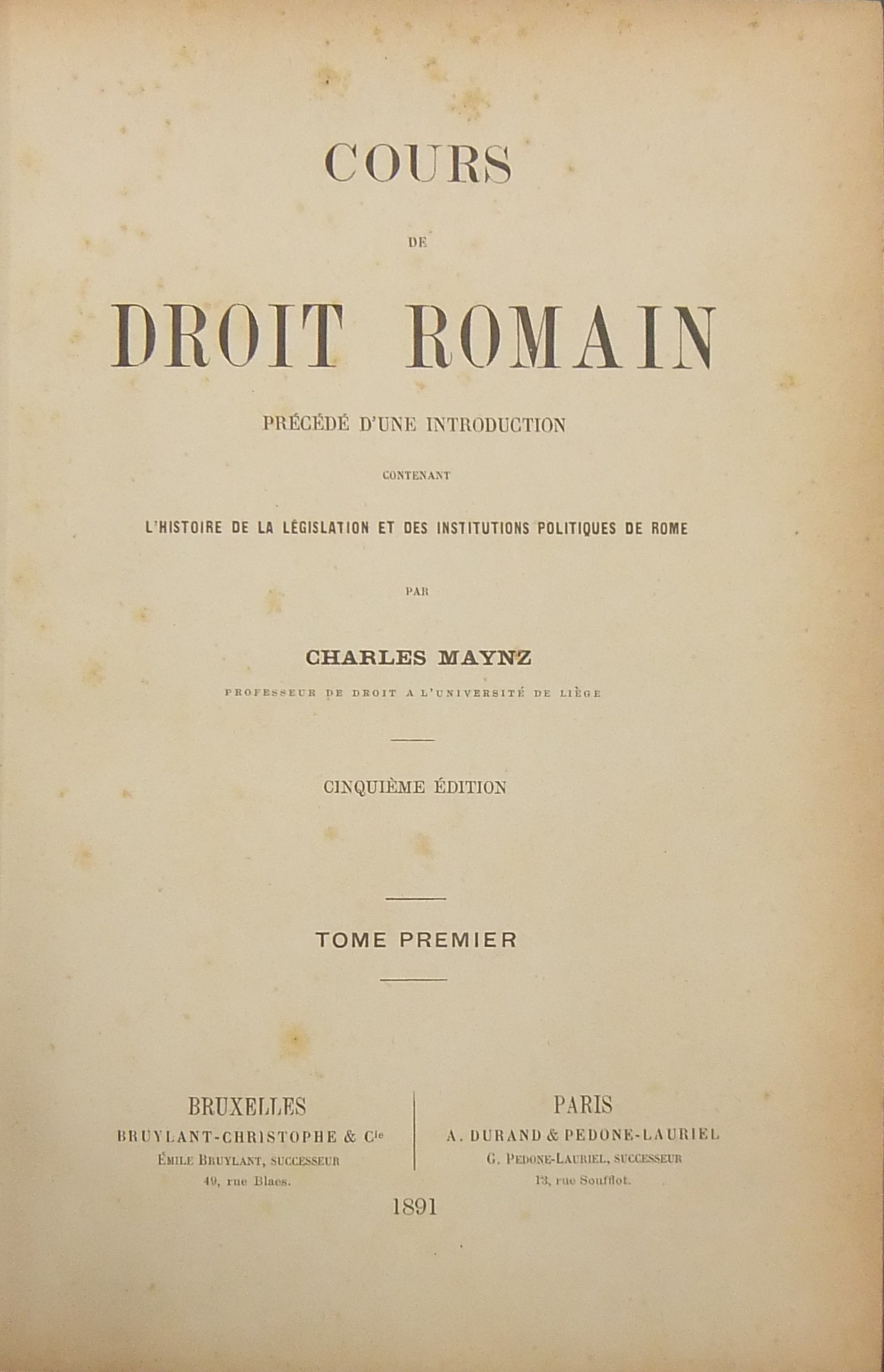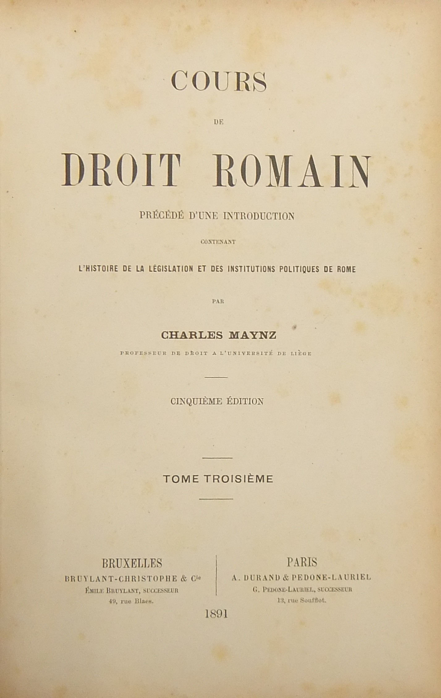 Cours de droit romain. Precede d'une introduction contenant l'histoire de la legislation et des institutions politiques de Rome
