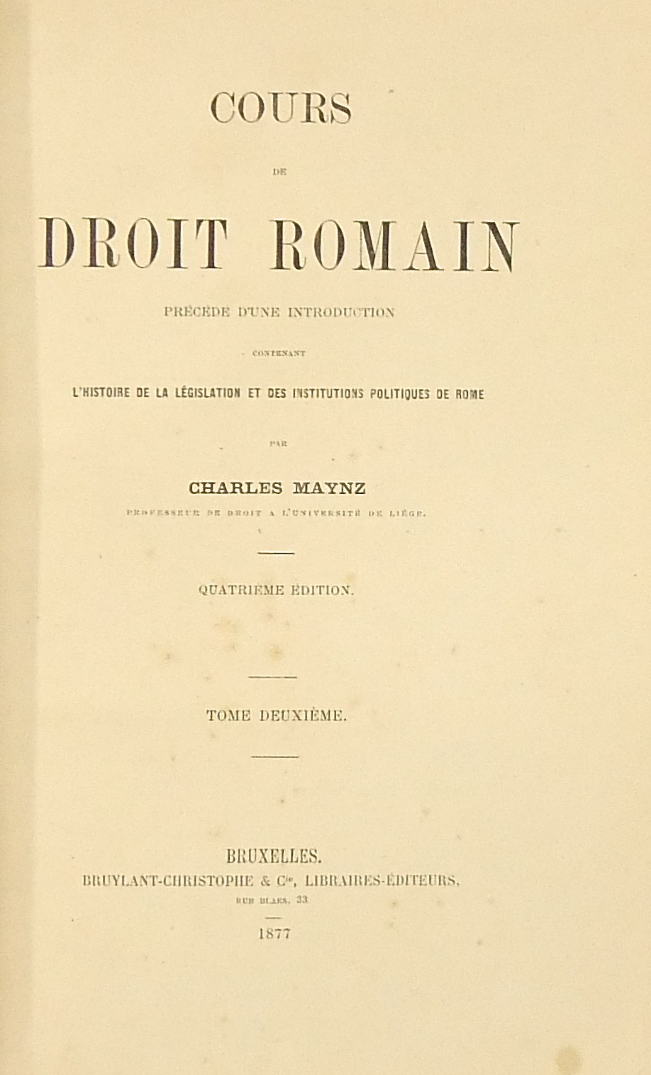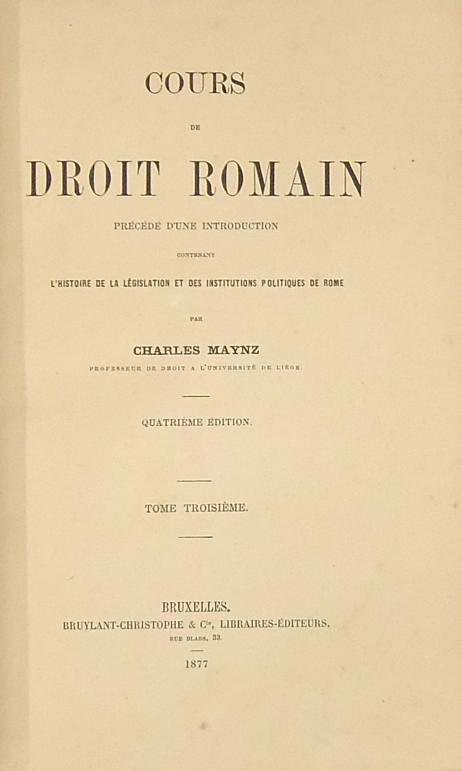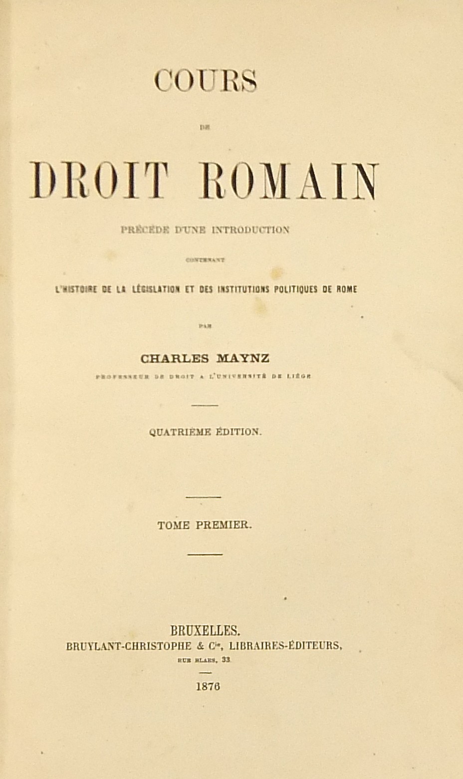 Cours de droit romain. Precede d'une introduction contenant l'histoire de la legislation et des institutions politiques de Rome