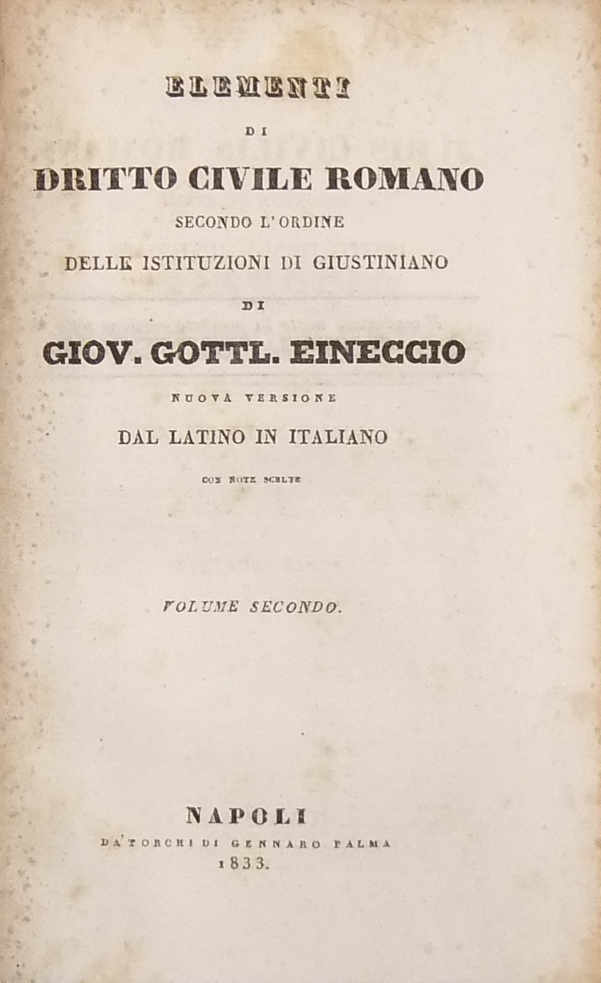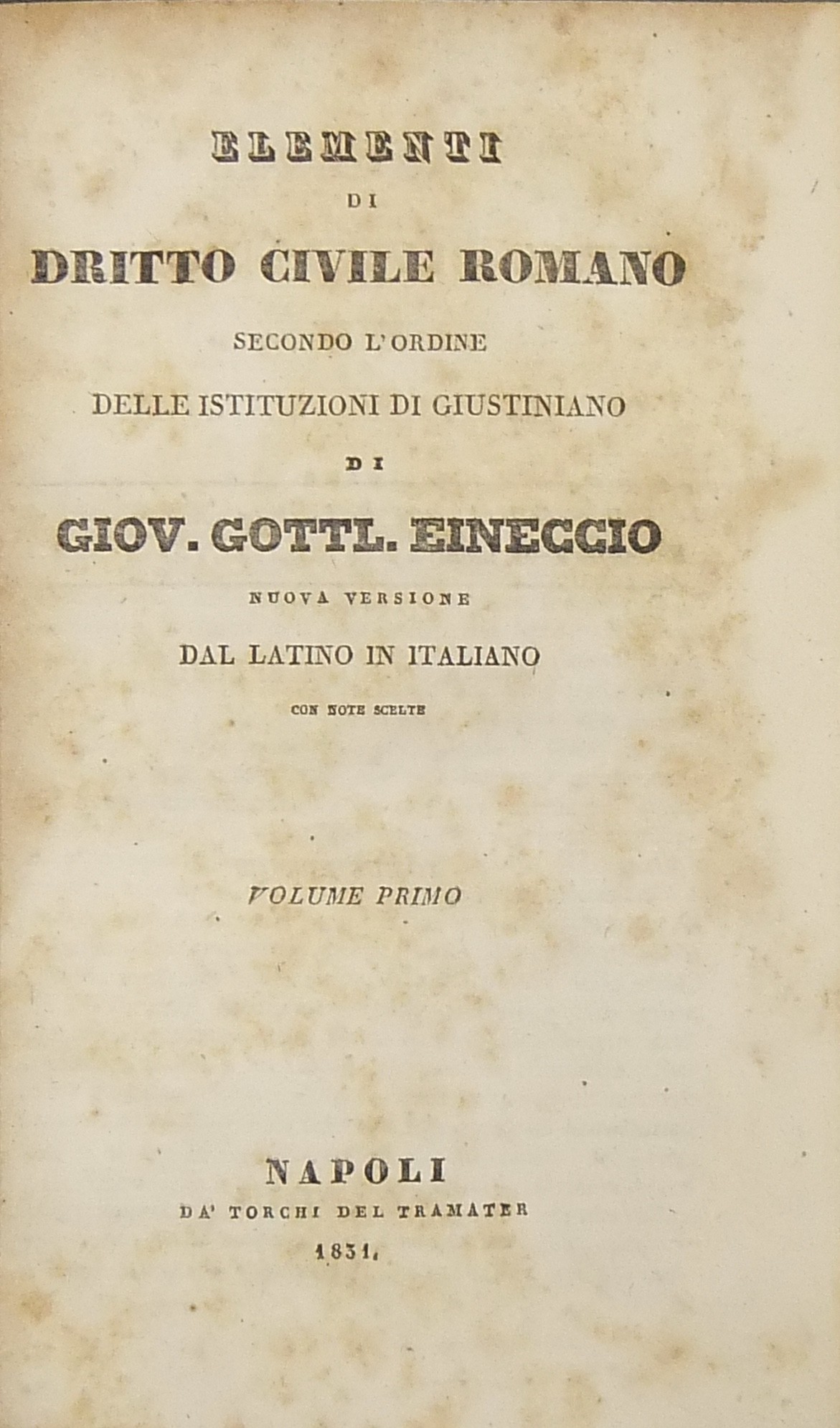 Elementi di dritto civile romano secondo l'ordine delle Istituzioni di Giustiniano. Nuova versione dal latino in italiano con note scelte
