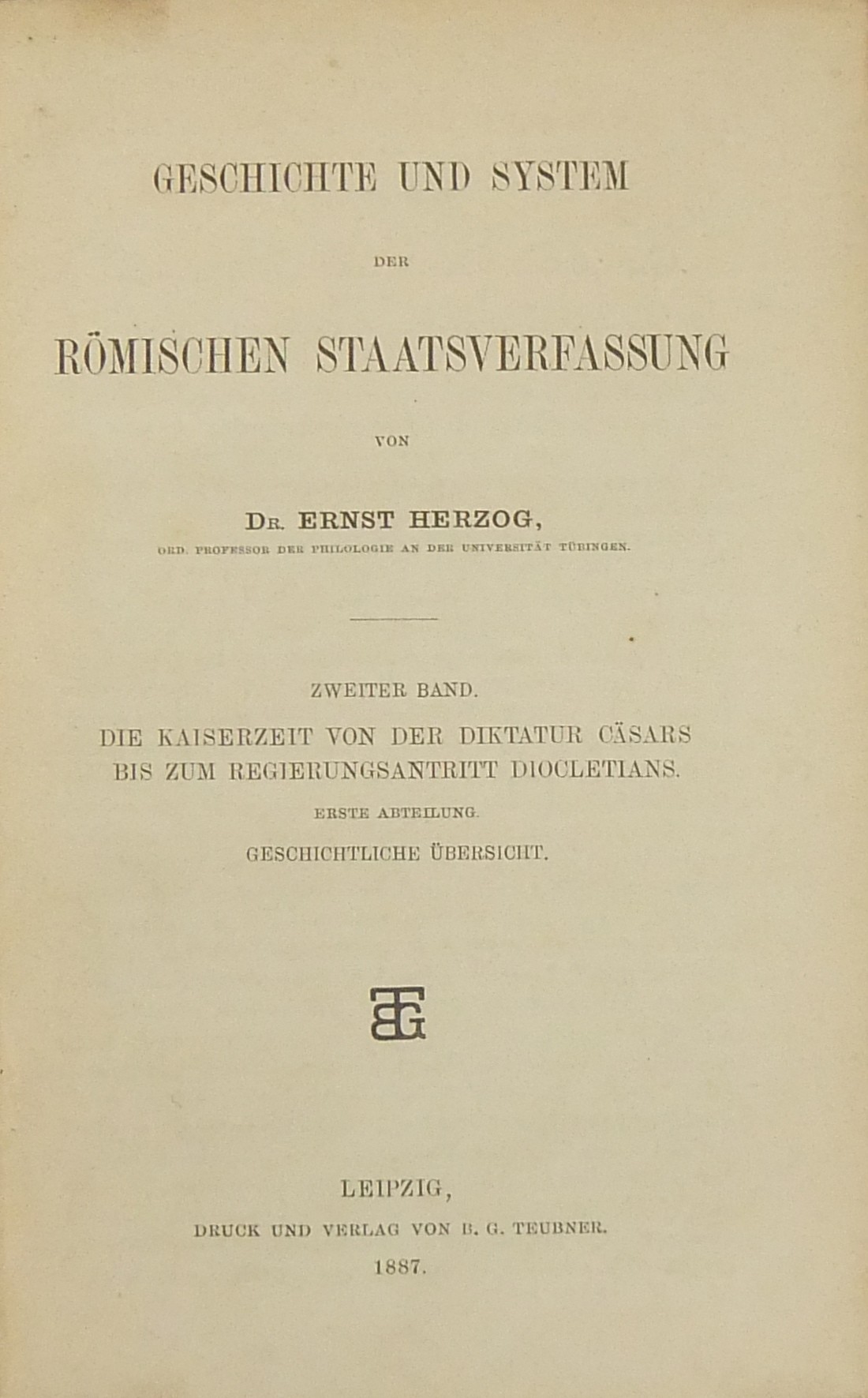 Geschichte und system der romischen staatsverfassung. Erster band - Konigszeit und republik Zweiter Band - Die kaiserzeit von der diktatur Casars bis zum regierungsantritt Diocletians. Erste abteiling - Geschichtliche ubersicht
