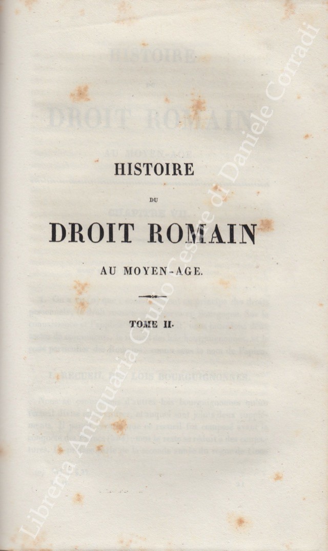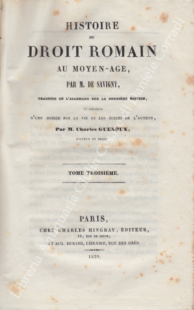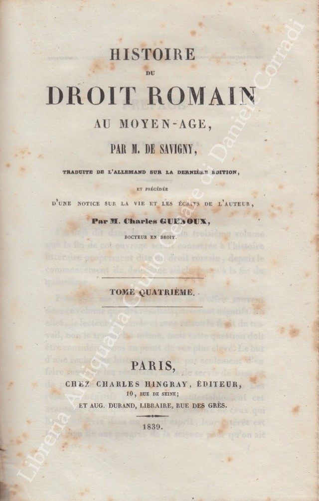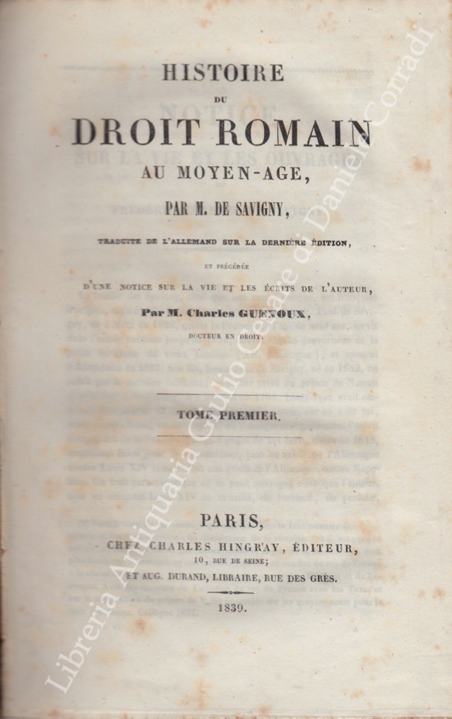 Histoire du droit romain au moyen age... Traduit de l'allemand sur la derniere edition precede d'une notice sur la vie et les ecrits de l'auteur par M. Charles Guenoux