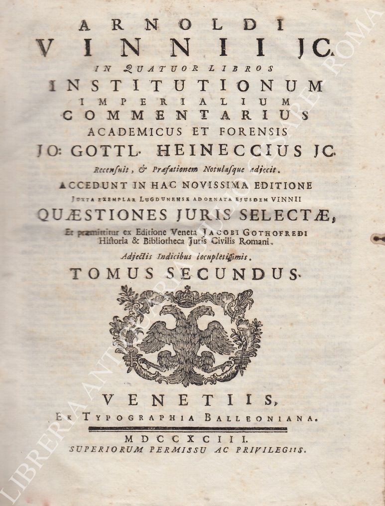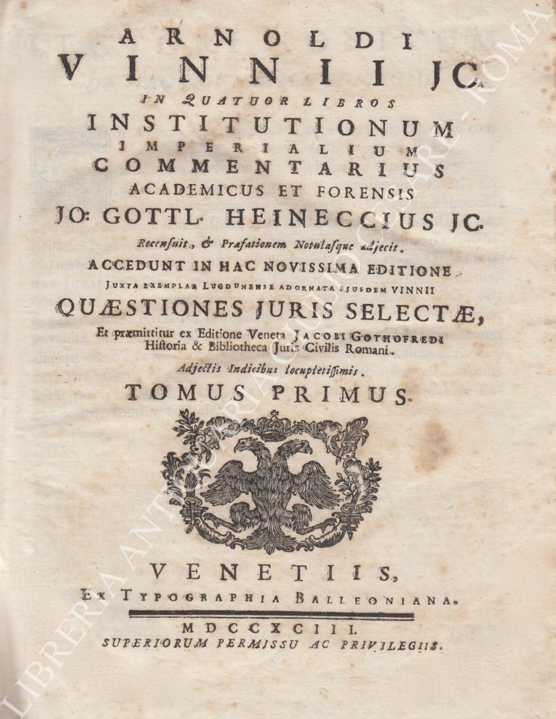 In quatuor libros Institutionum Imperialium commentarius academicus et forensis Jo: Gottl. Heinnecius Jc. Recensuit, & Praefationem Notulasque adjecit