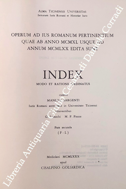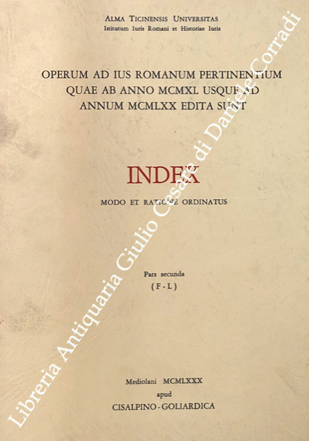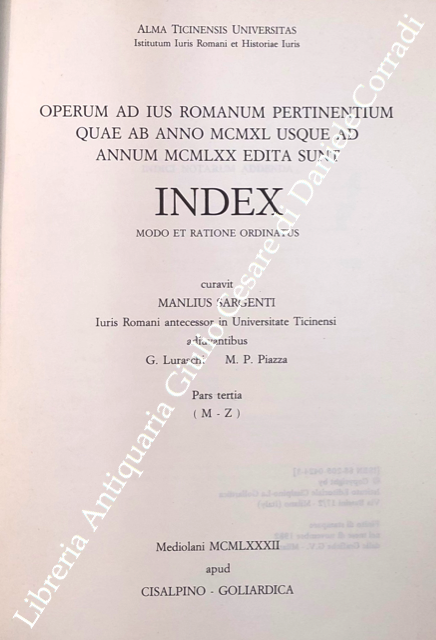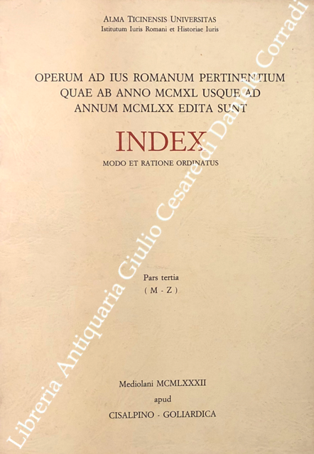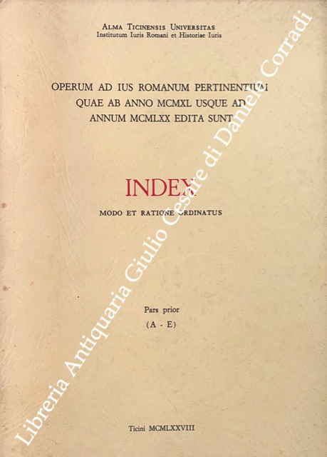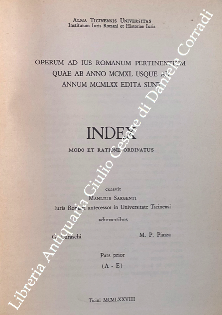 Index. Modo et ratione ordinatus. Operum ad ius romanum pertinentium quae ab anno MC;XL usque ad annum MCMLXX edita sunt. Pars prior (A-E); Pars secunda (F-L); Pars tertia (M-Z)