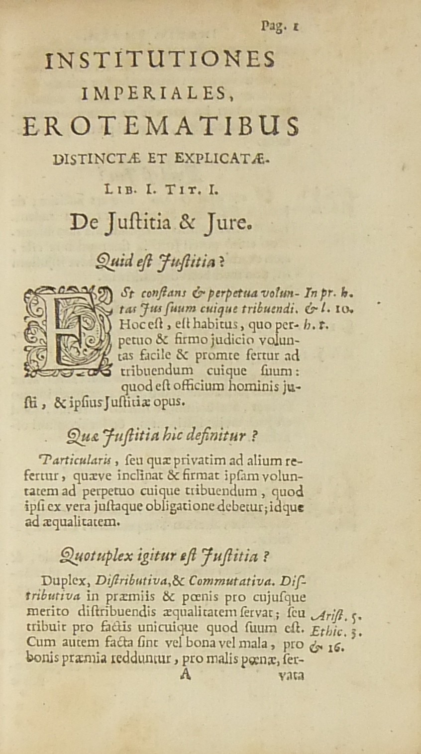 Institutiones imperiales erotematibus distinctae atque ex ipsis principiis regulisque juris passim insertis explicatae