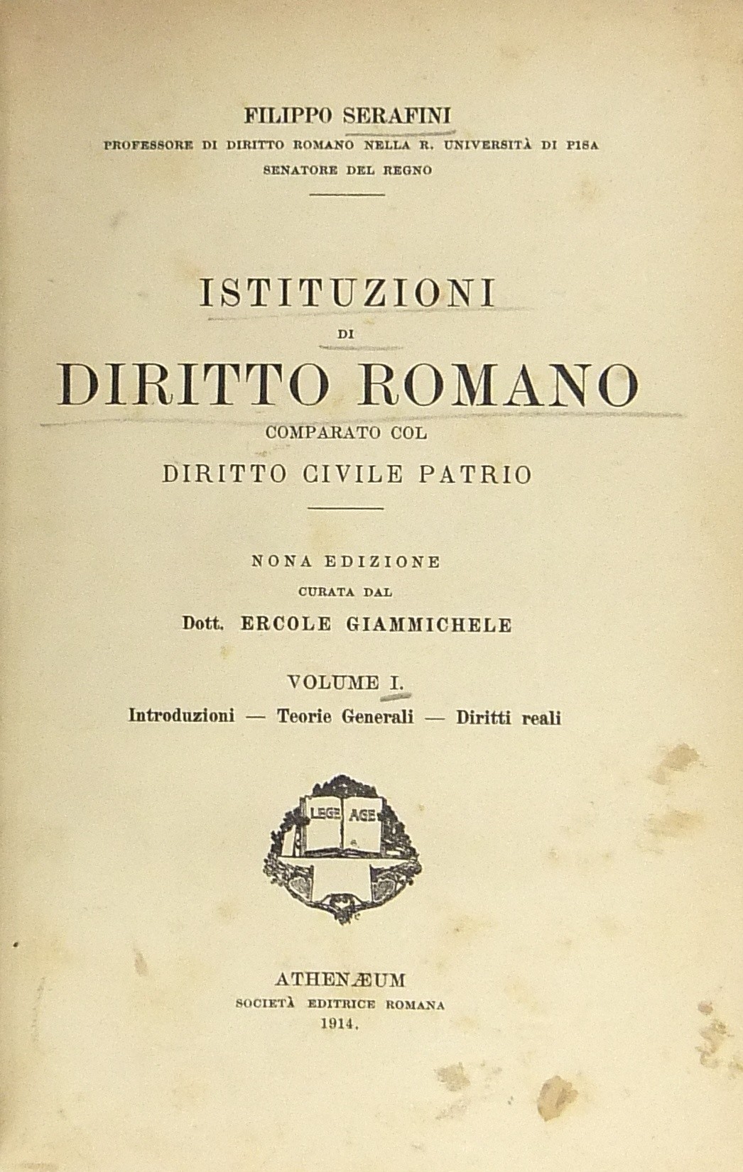 Istituzioni di diritto romano comparato col diritto civile patrio. Vol. I - Introduzioni. Teorie generali. Diritti reali. Vol. II - Delle obbligazioni. Diritto di famiglia. Diritto di ereditÃ