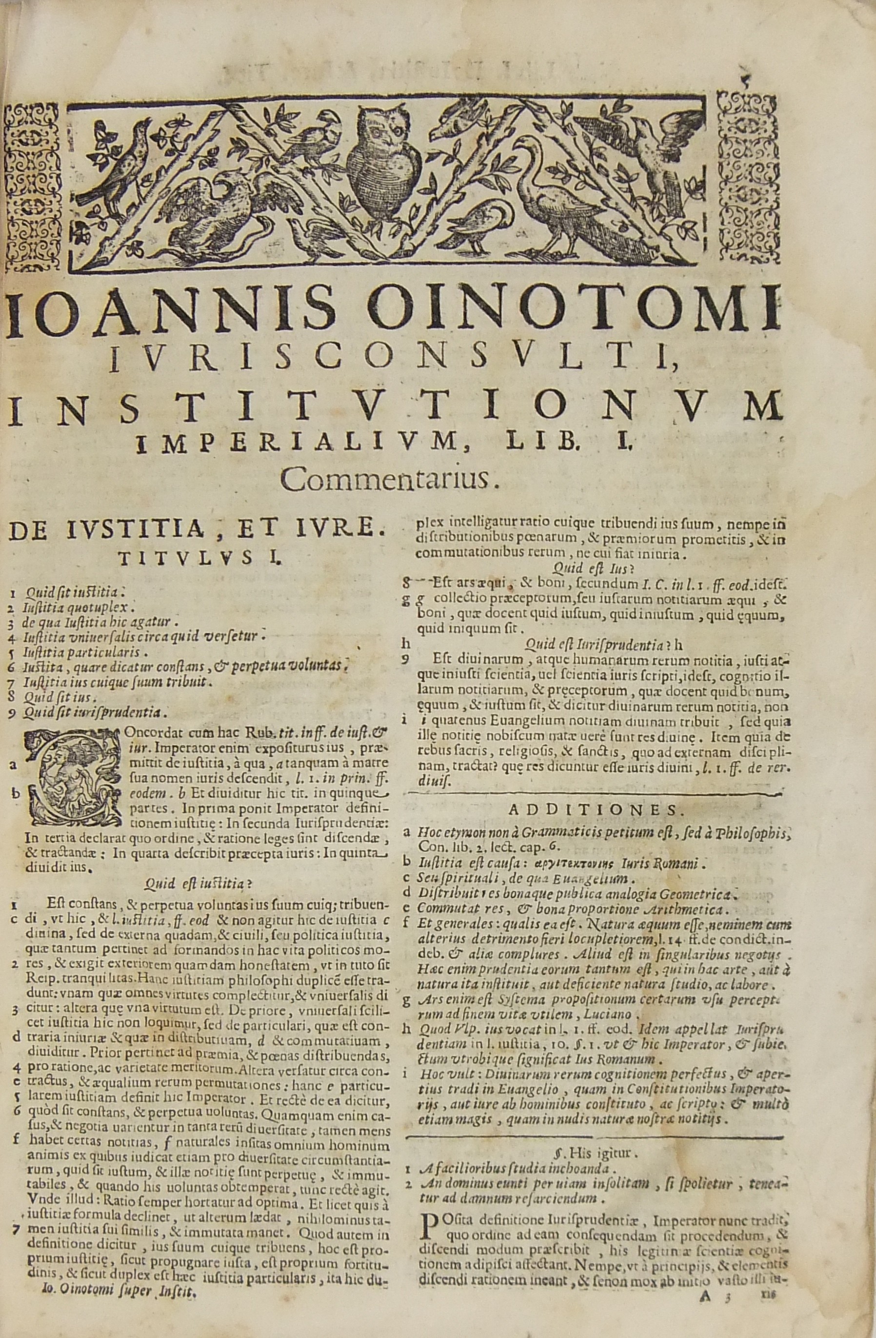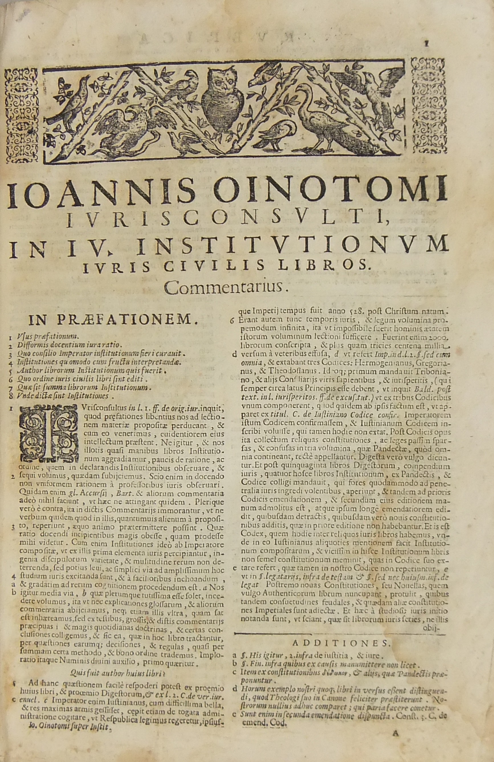 Joannis Oinotomi.. In quatuor Institutionum Imperialium Justiniani Imp. Libros Commentarij nunc primum ..