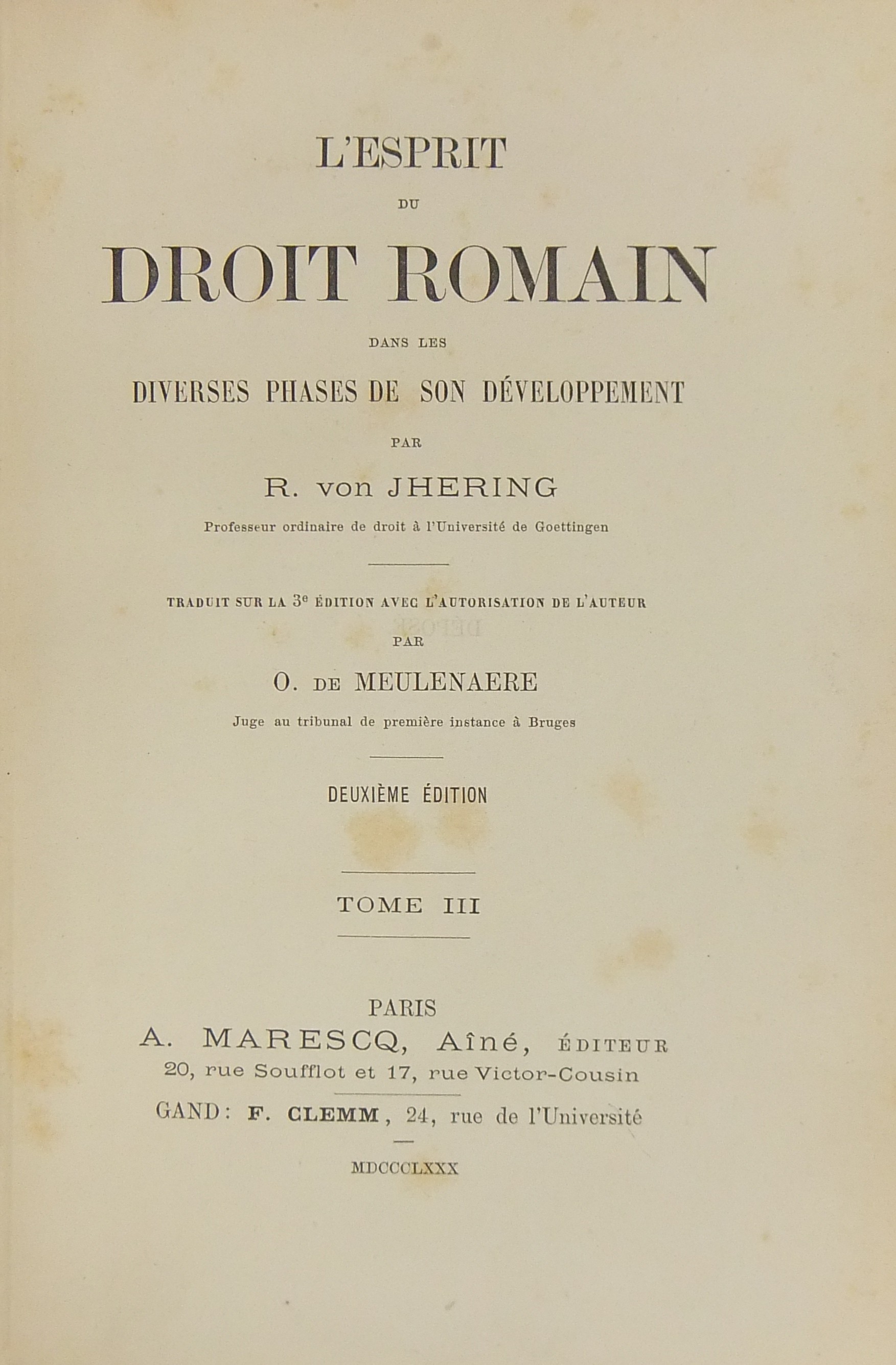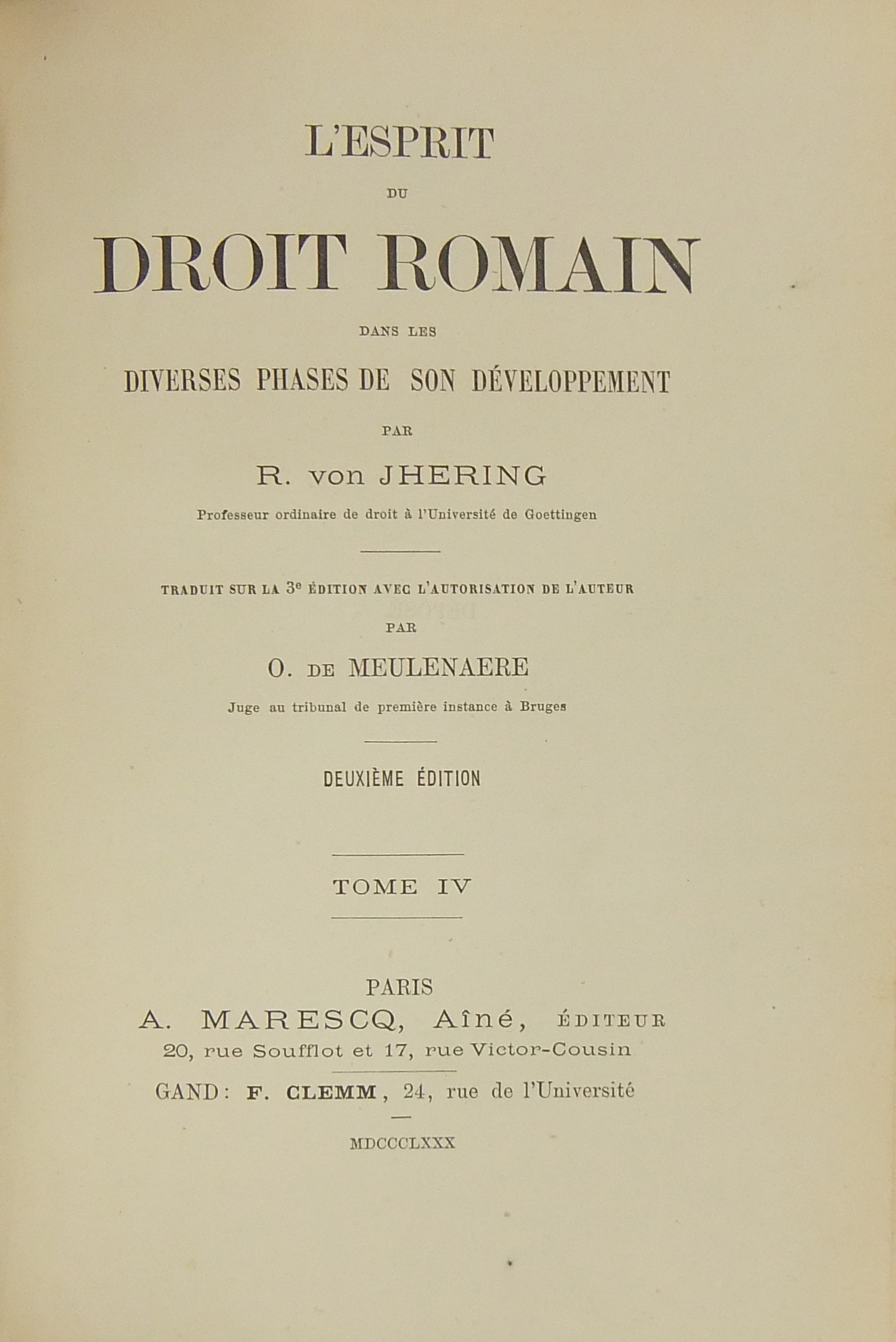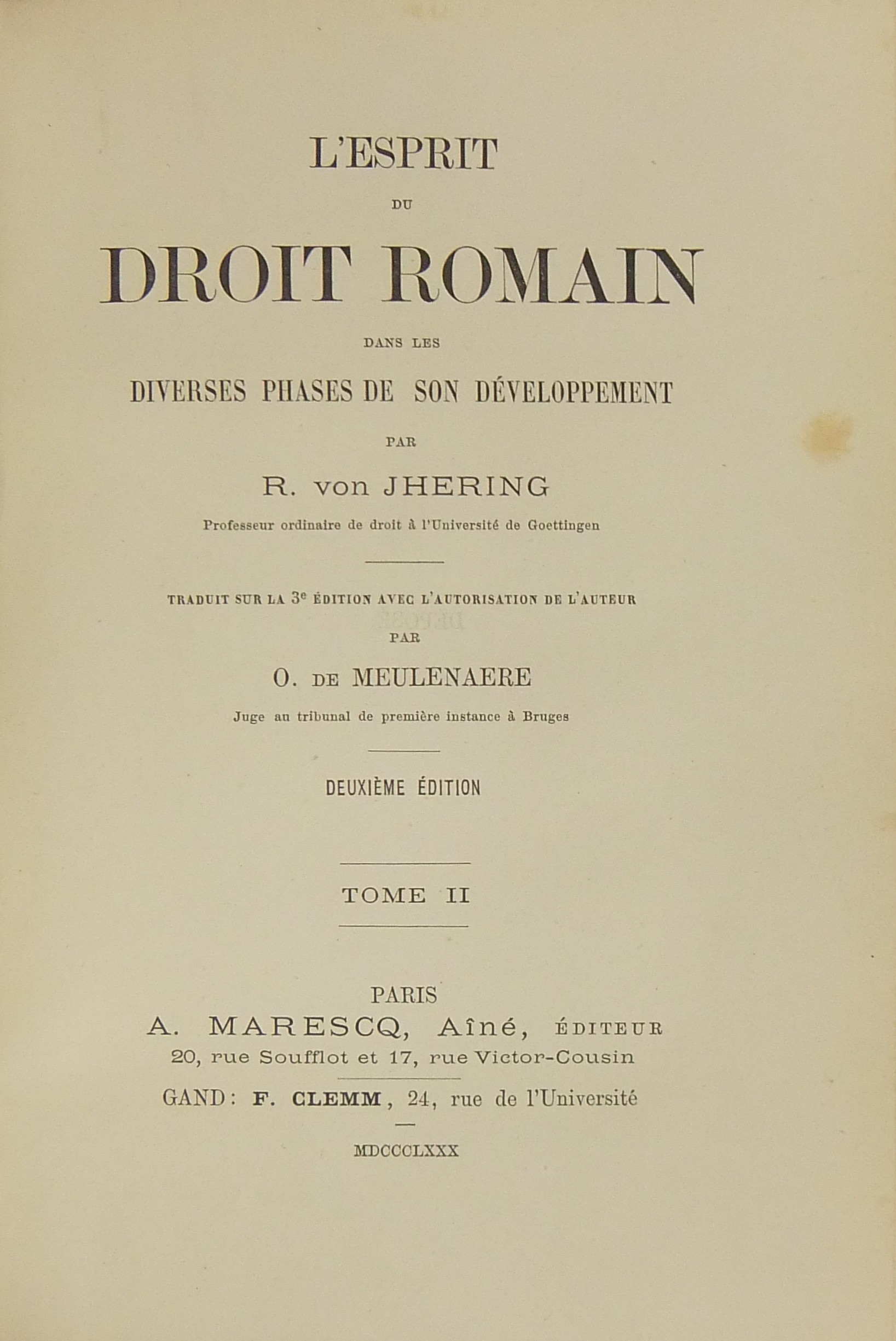 L'esprit du droit romain dans les diverses phases de son developpement. Traduit sur la 3e edition avec l'autorisation de l'auteur par O. de Meulenaere
