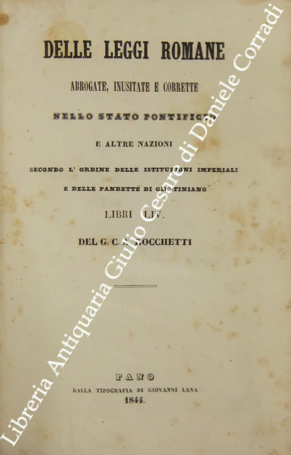 Delle leggi romane abrogate, inusitate e corrette nello Stato Pontificio e altre nazioni secondo l'ordine delle istituzioni imperiali e delle Pandette di Giustiniano. Libri LIV