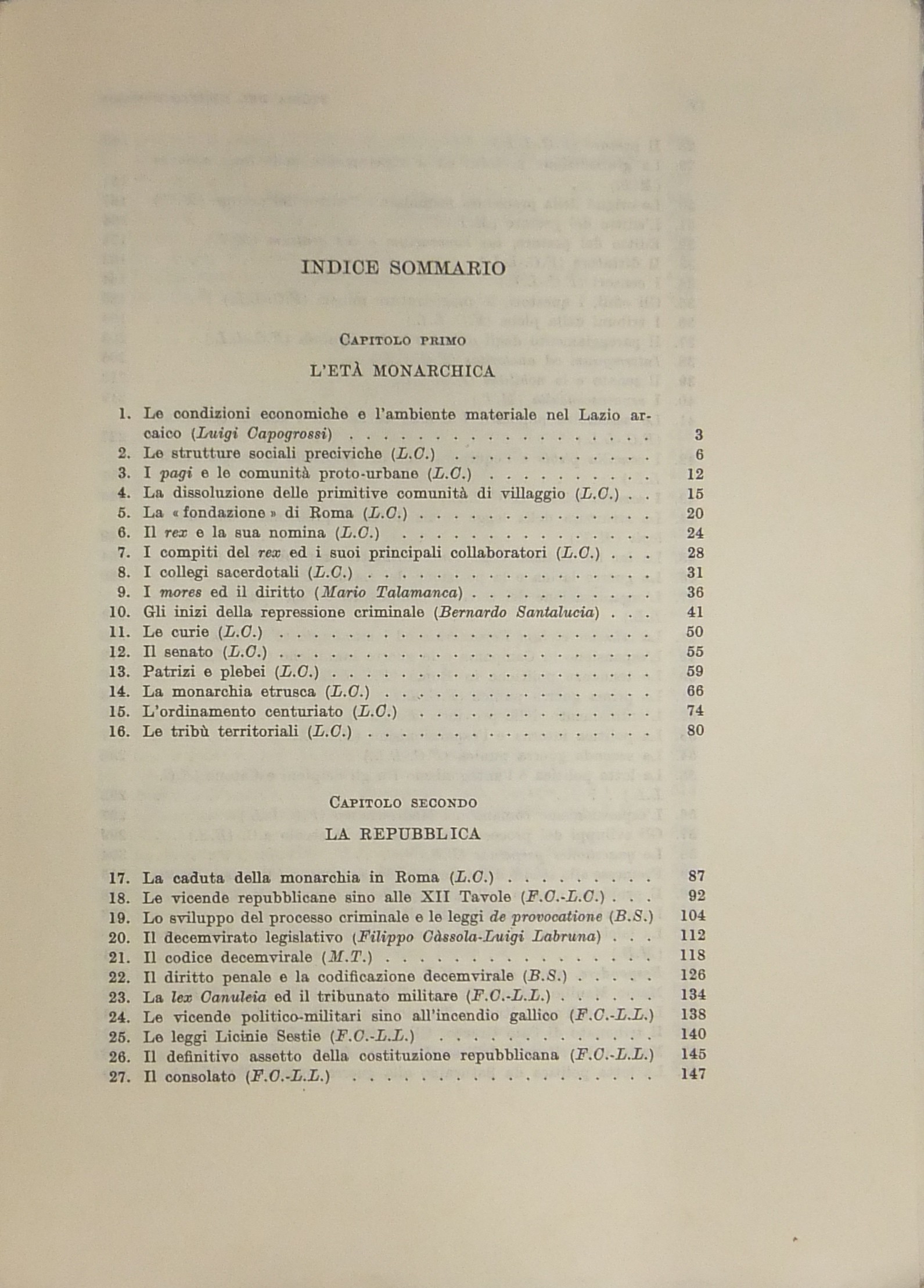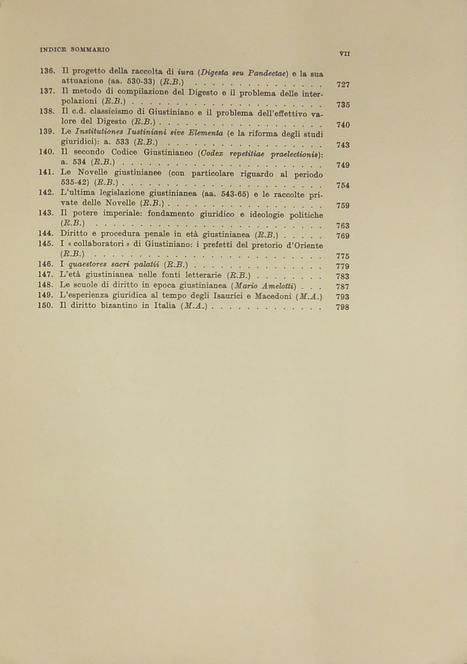 Scritti di: Mario Amelotti, Roberto Bonini, Massimo Brutti, Luigi Capogrossi, Filippo Cassola, Giuliano Cervenca, Luigi Labruna, Antonio Masi, Mario Mazza, Bernardo Santalucia, Mario Talamanca.