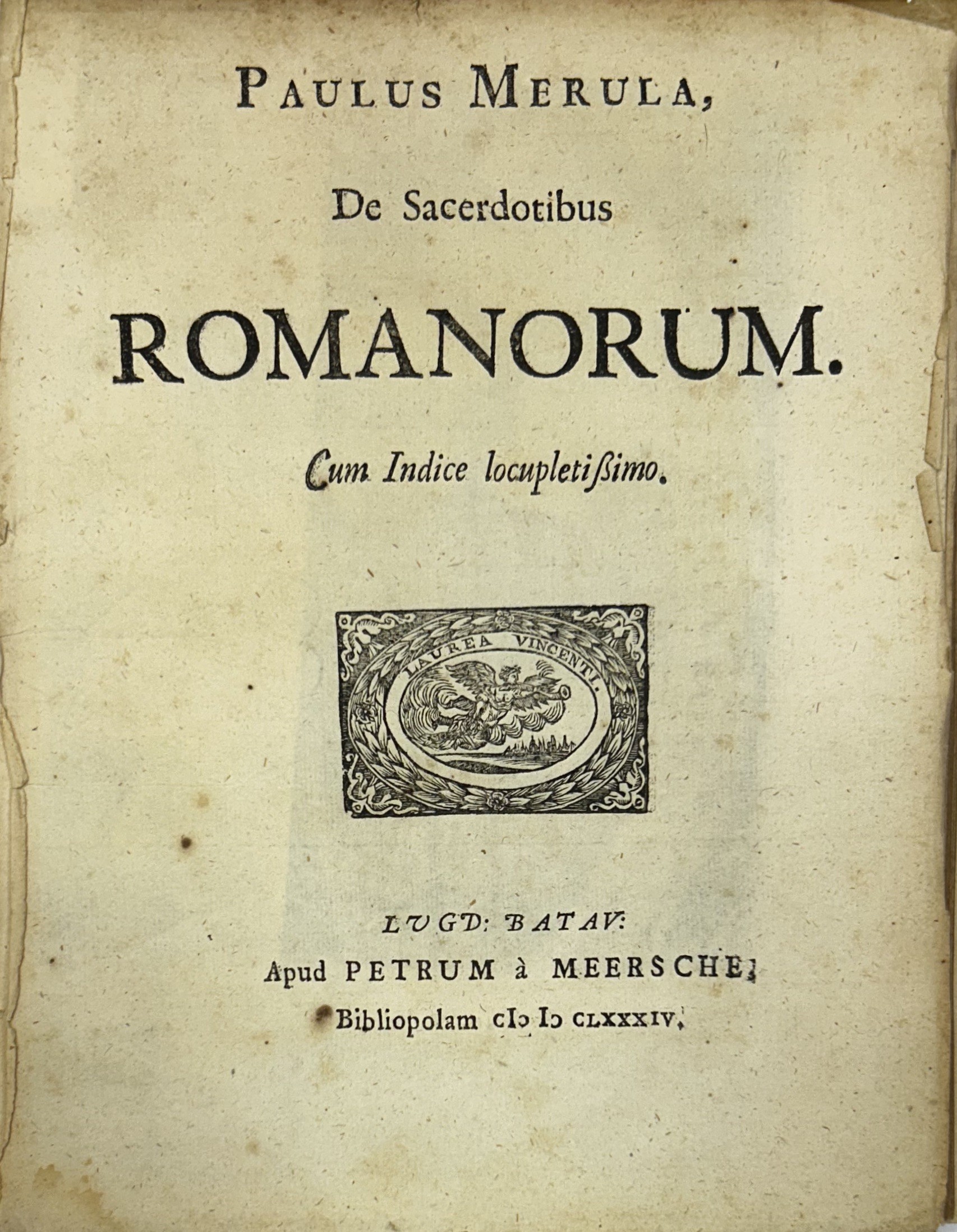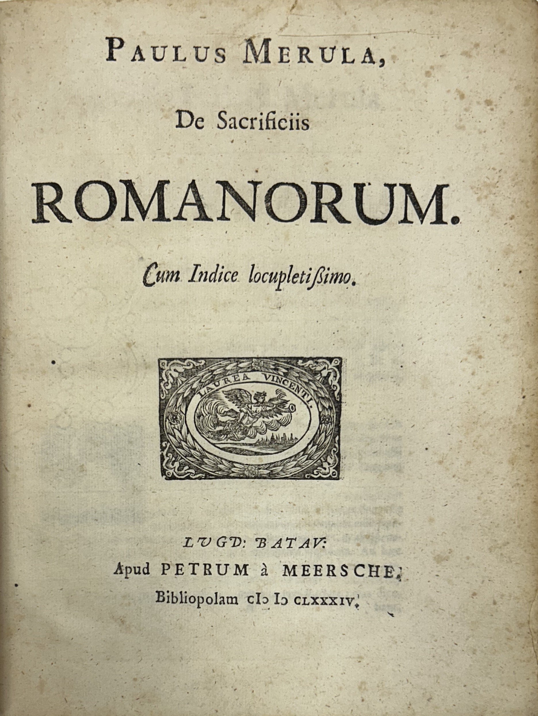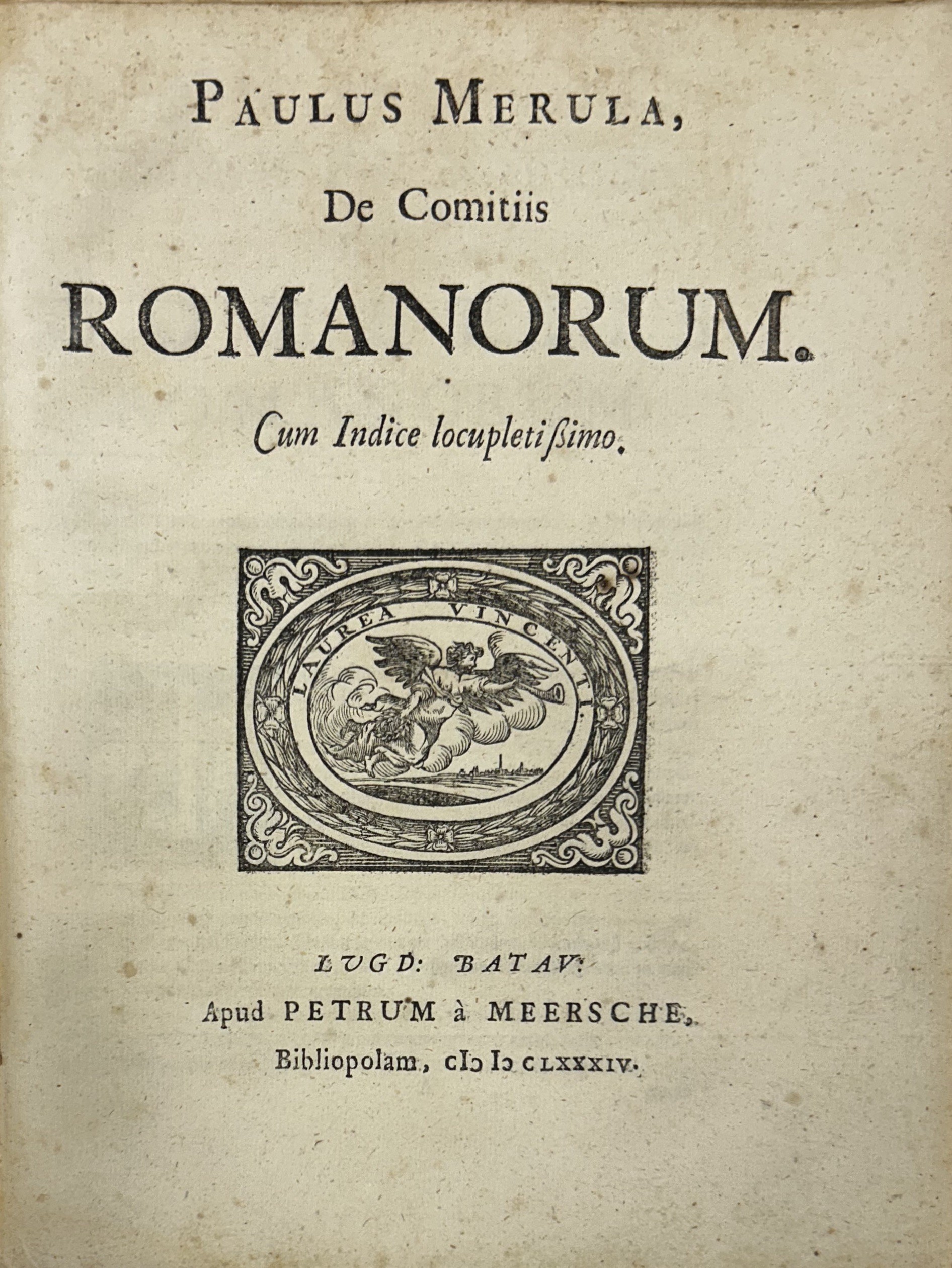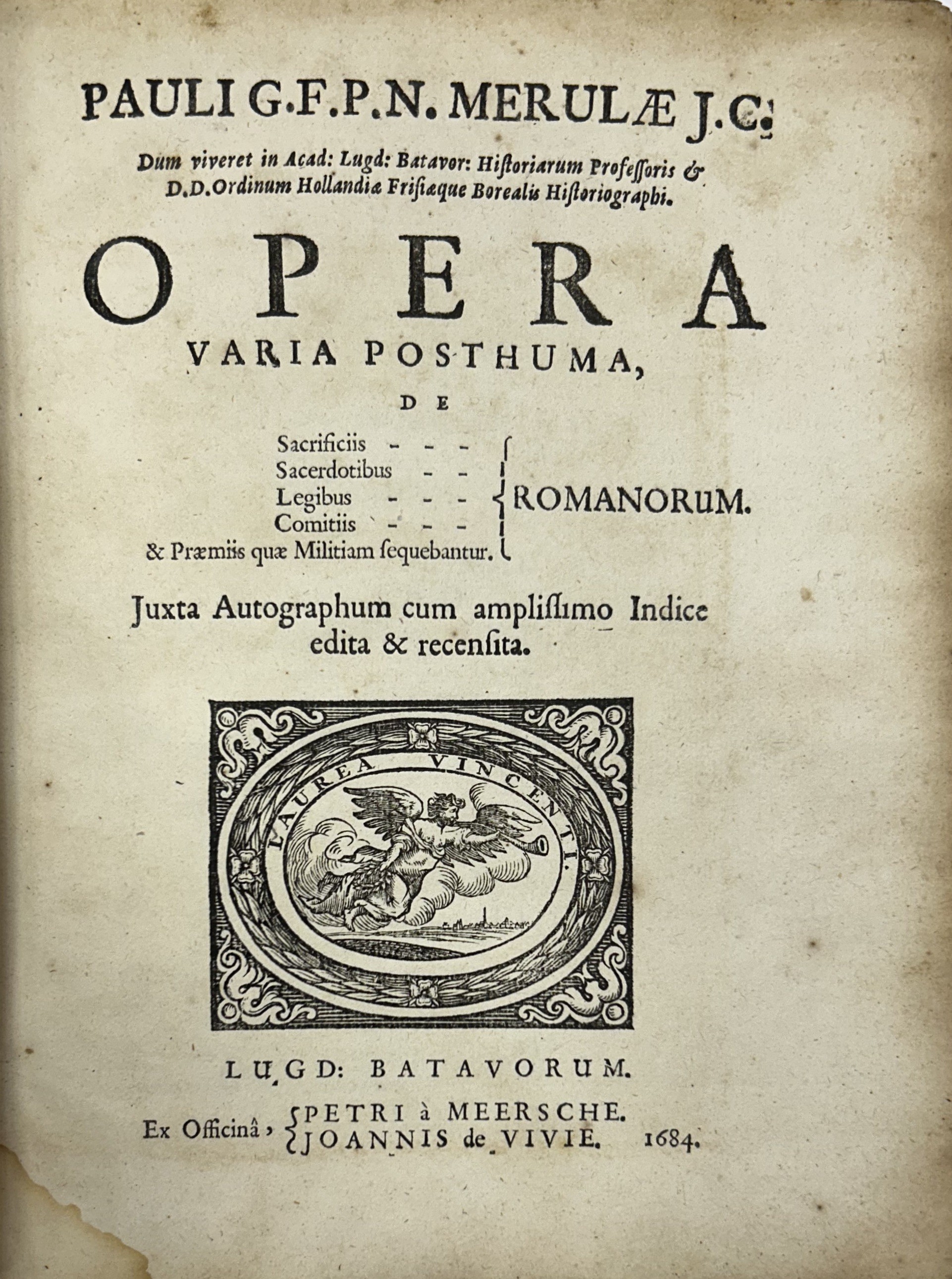 Opera varia posthuma: De sacrificiis romanorum. UNITO A: De sacerdotis romanorum, pp. (2) + 55 + (1); UNITO A: De legibus romanorum, pp. 288 + (5); UNITO A: De comitiis romanorum, pp. 49 + (2)